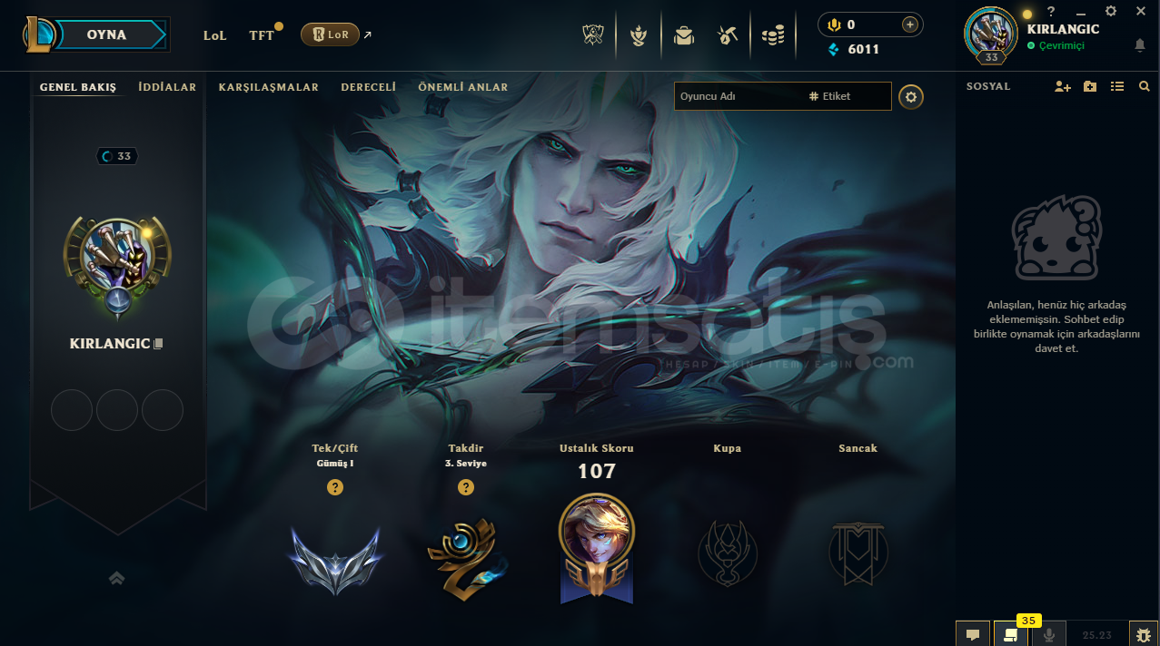 TR - 3 WİN 3 LOSE YÜKSEK MMR SMURF HESAP!