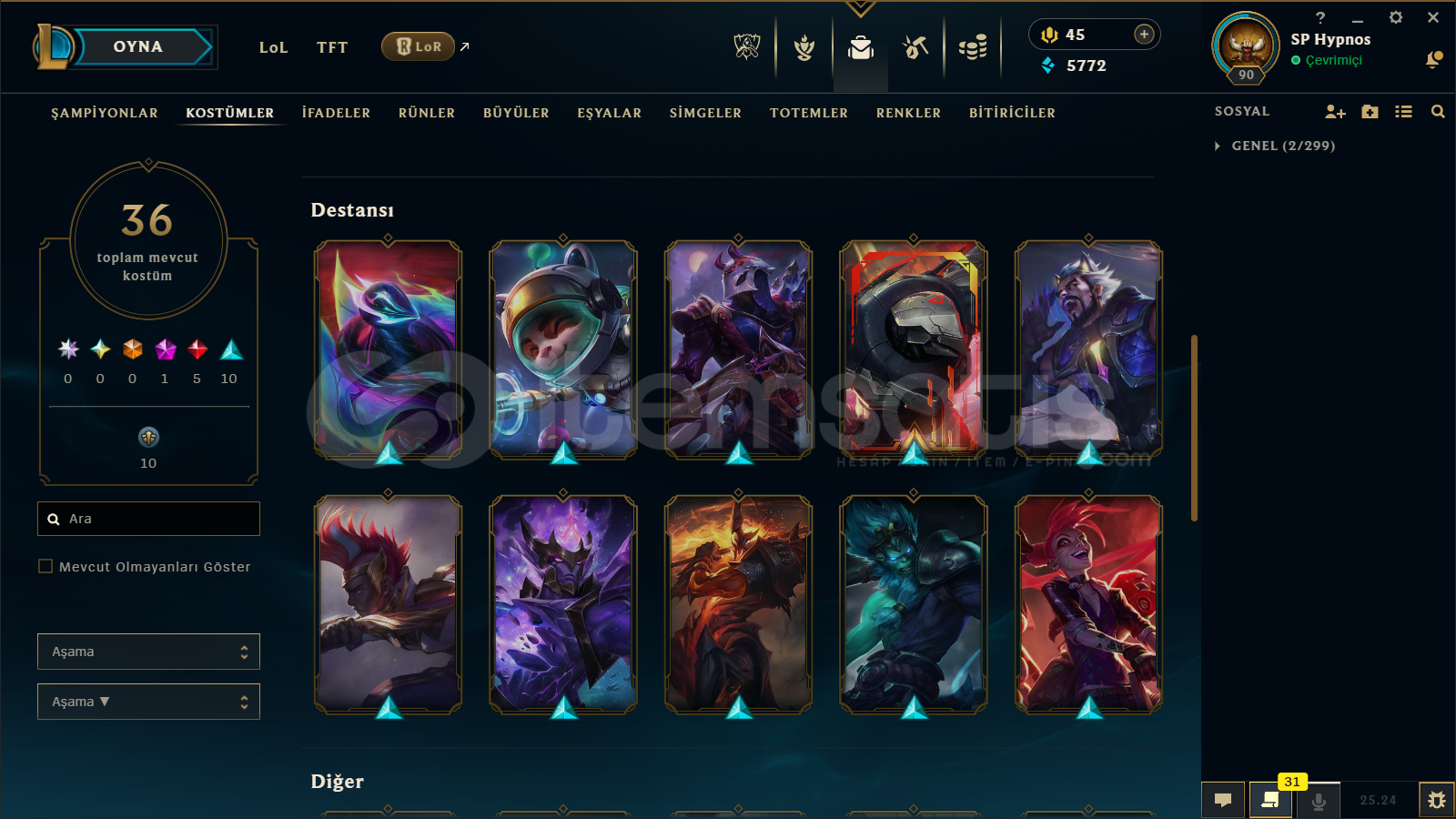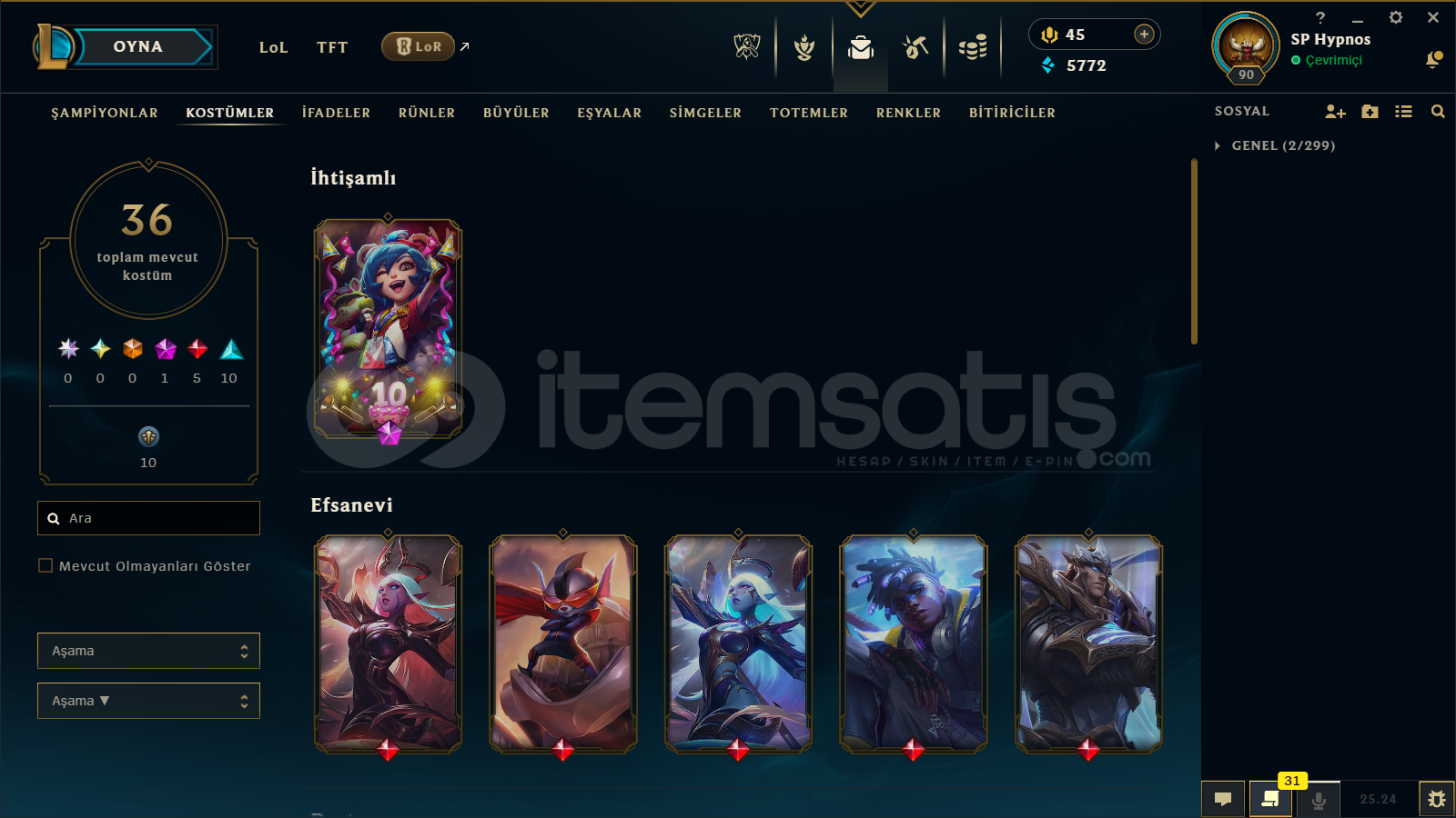 🔷 League of Legends Bilgileri🔹 Sunucu: TR🔹 Level: 90🔹 Sıralama:• Tek/Çift: Unranked• Esnek 5v5: Unranked🔹 Mavi Öz: 5772🔹 Şampiyon Sayısı : 66🔹 Kostüm Sayısı: 36📊 OP.GG Profili : https://op.gg/tr/lol/summoners/TR/SP%20Hypnos-000✅ Hesaplarımın Tamamen ArkasındayımPiyasadaki bir&c...