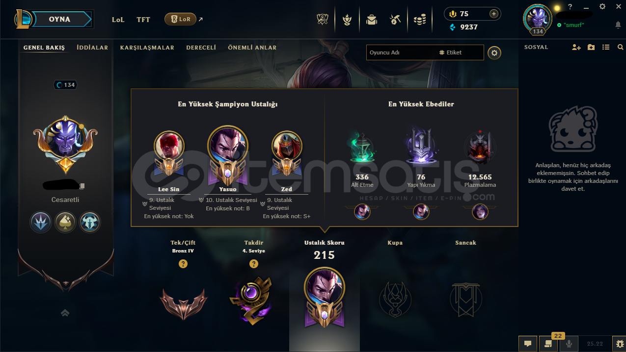 134 Level - Bronz III(TR) Hesaptır.