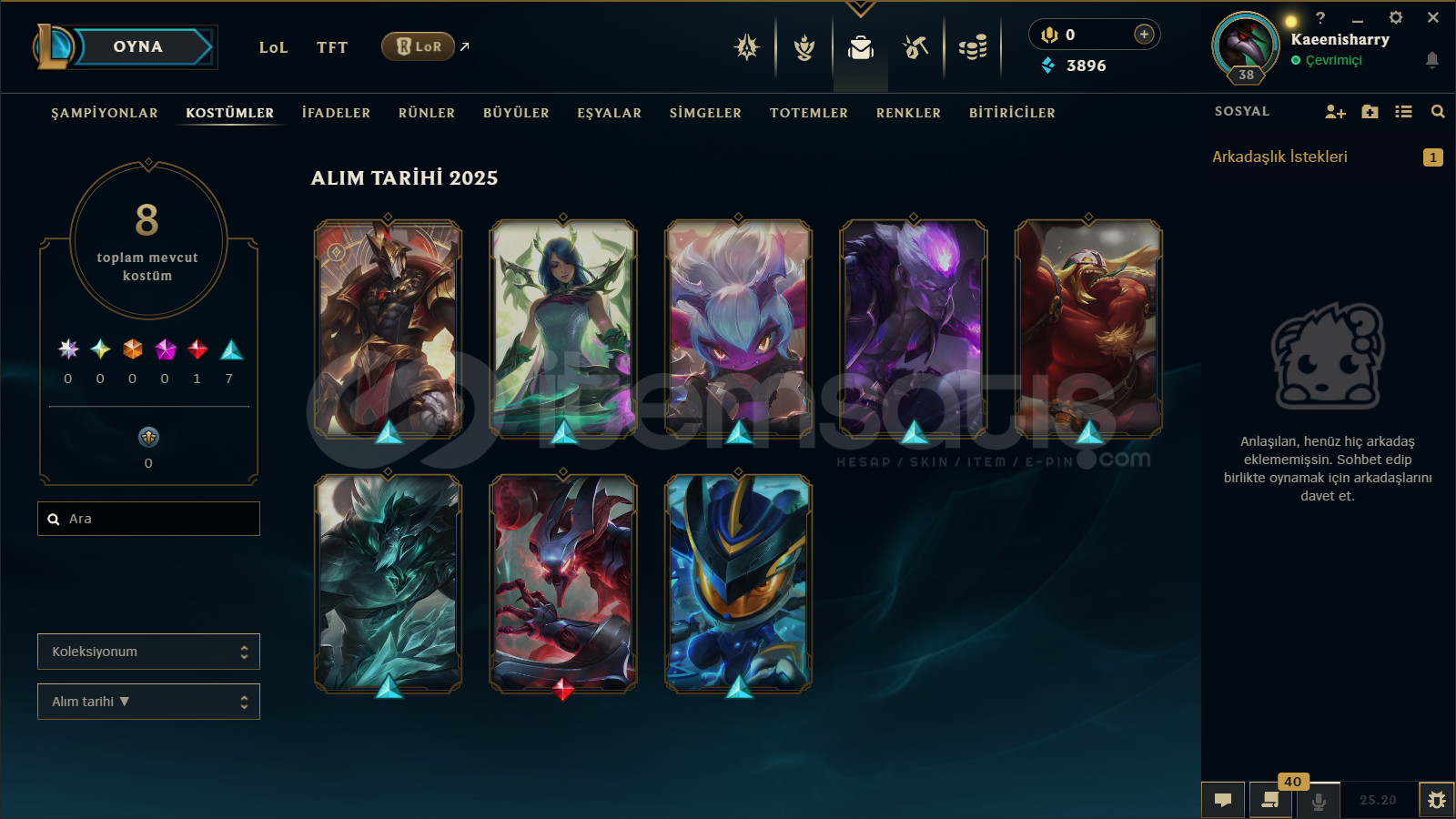 hesap plat 4 olup +38 lp gelmektedir cok rahatlıkla smurf kasabilirsiniziçinde güzel kostümler vardır mainlik yapılabilir wr i yüksektir mail değişimi yapılacaktır