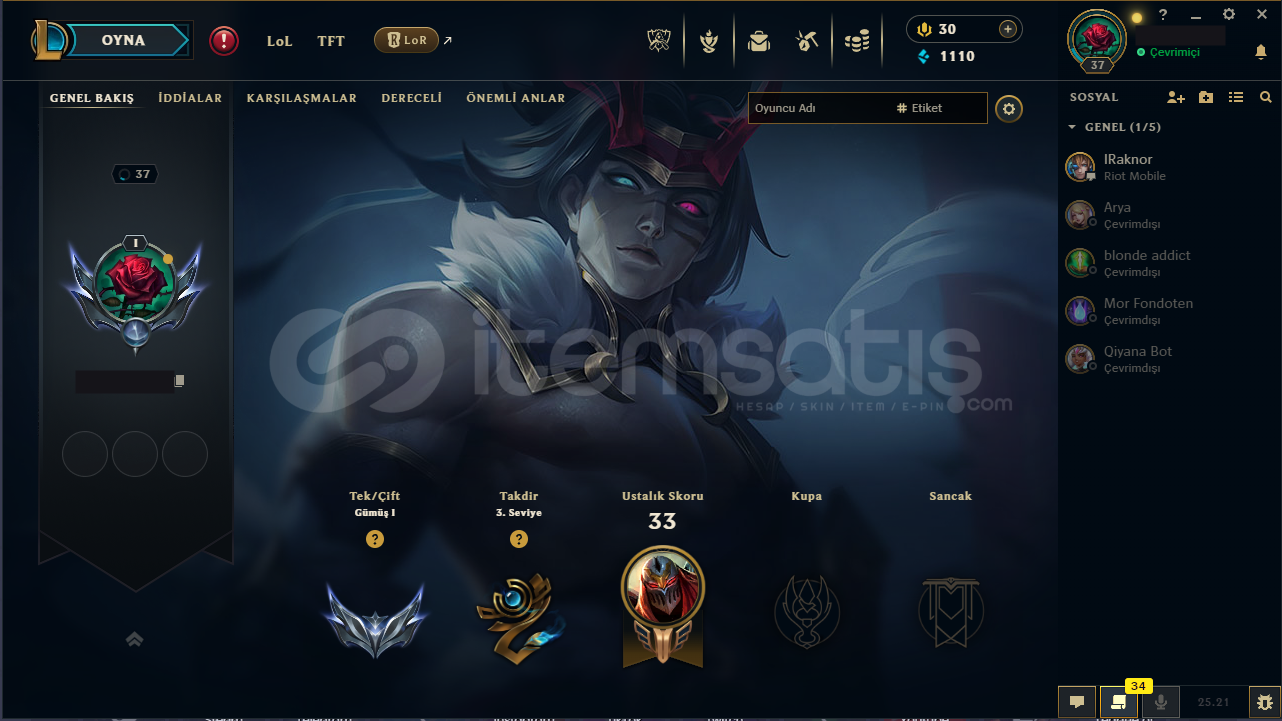 Teslimat 7/24 Otomatik teslim edilir.Hesaplar Ban dalgasından etkilenmez.✅ Yüksek MMR'a sahiptir.✅ Takdir Seviyeleri +2'dir.Hesaplarımızda hiç bir sıkıntı çıkmamaktadır. Herhangi bir sıkıntıda en iyi desteği vermeye çalışacağız. Detaylı bilgi için mesaj atabilirsiniz.