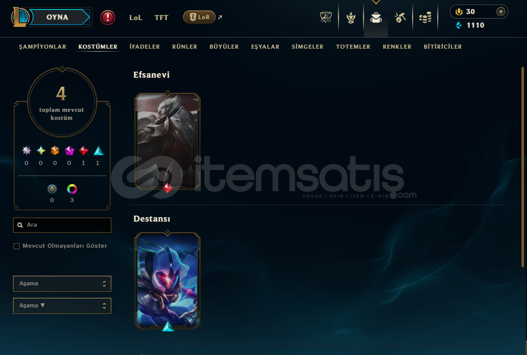TR - 4 KOSTÜM GÜMÜŞ 1 SMURF HESAP +38 LP GAİN