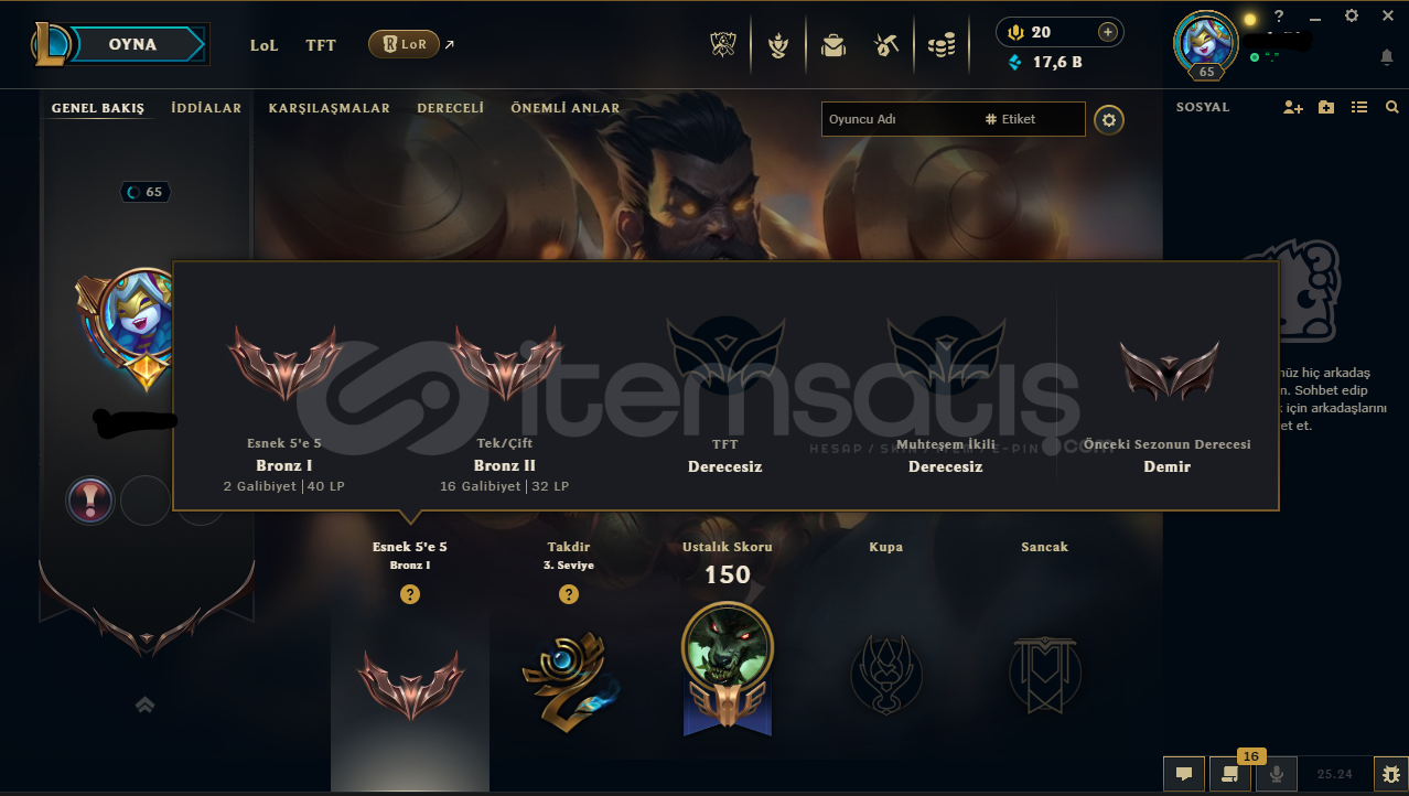 65 Level + BRONZ 1 (TR) Hesaptır.