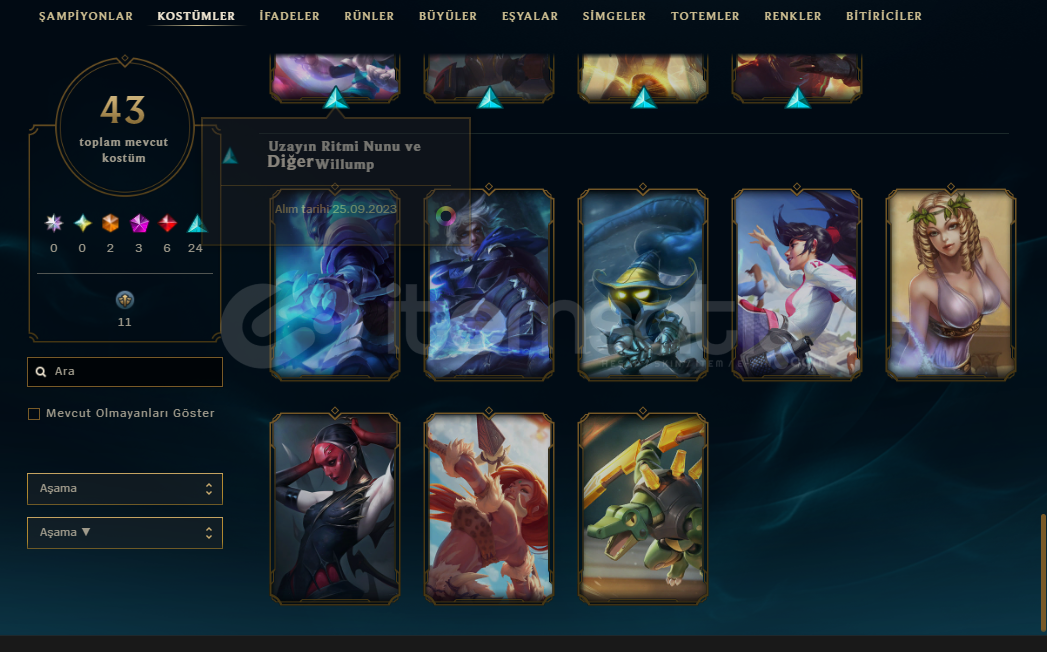 43 Kostüm ve 83 Şampiyon bulunmaktadır.