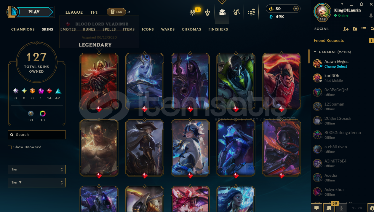 HESAPTA TOPLAM 127 ADET SKİN MEVCUT
