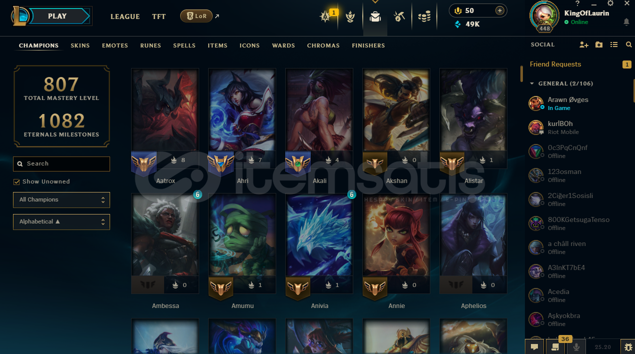 HESAP TURKEY SUNUCUHESAP SEVİYESİ 448 LEVELHESAPTA ASLA BİR SORUN YOKTURHESAPTA TOPLAM 127 ADET SKİN MEVCUT HESAPTA TOPLAM 171 ADET HERO VARDIRHESAP SATIN ALDIKTAN SONRA MAİL-ŞİFRE DEĞİŞTİREBİLİRSİNİZ