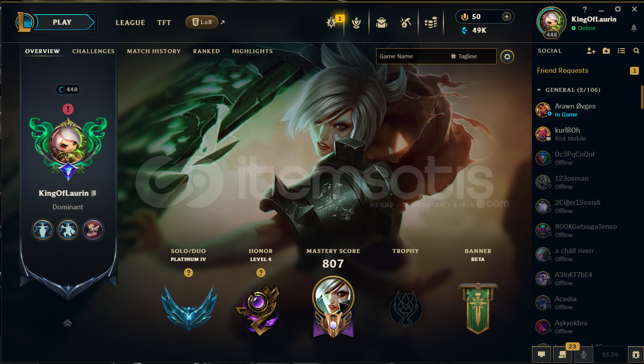 TR / 448 LEVEL / 127 SKİN / 171 HERO / PLAT IV