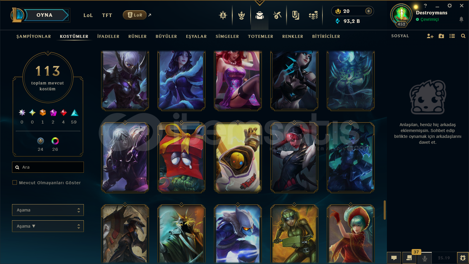 hesap çok güzel çıktı herşey var yağmacı asil champions (abartmıyorum) tavsiye ederim