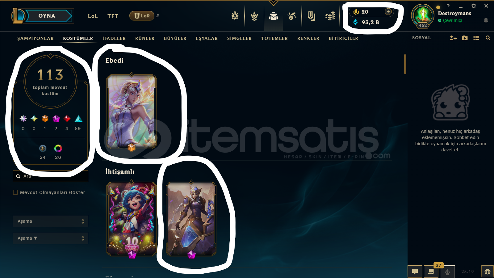 Aktif olmasam bile otomatik teslimat yapılmaktadır.En hızlı ve güvenilir alışveriş yapabileceğiniz mağazaya hoşgeldiniz :+4250 Başarılı satış güvencesiyle..MAİL : KENDİ MAİLİNİZE DEVREDİLECEKRANK :TEK ÇİFT ALTIN IV / ESNEK ALTIN IIHERO : FUL HERO 171/171SKIN : 113SİMGE SAYISI : 266MAVİ ÖZ : 93,2 B ...
