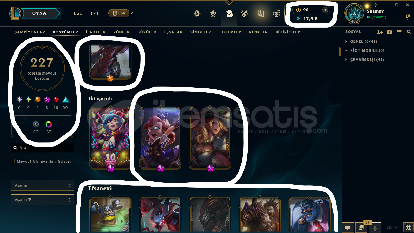 Aktif olmasam bile otomatik teslimat yapılmaktadır.En hızlı ve güvenilir alışveriş yapabileceğiniz mağazaya hoşgeldiniz :+4250 Başarılı satış güvencesiyle..MAİL : KENDİ MAİLİNİZE DEVREDİLECEKRANK :TEK ÇİFT ALTIN IV / ESNEK PLATİN IV / TFT G- DEMİR IIHERO : 170/171SKIN : 227SİMGE SAYISI : 331MAVİ ÖZ&nbs...