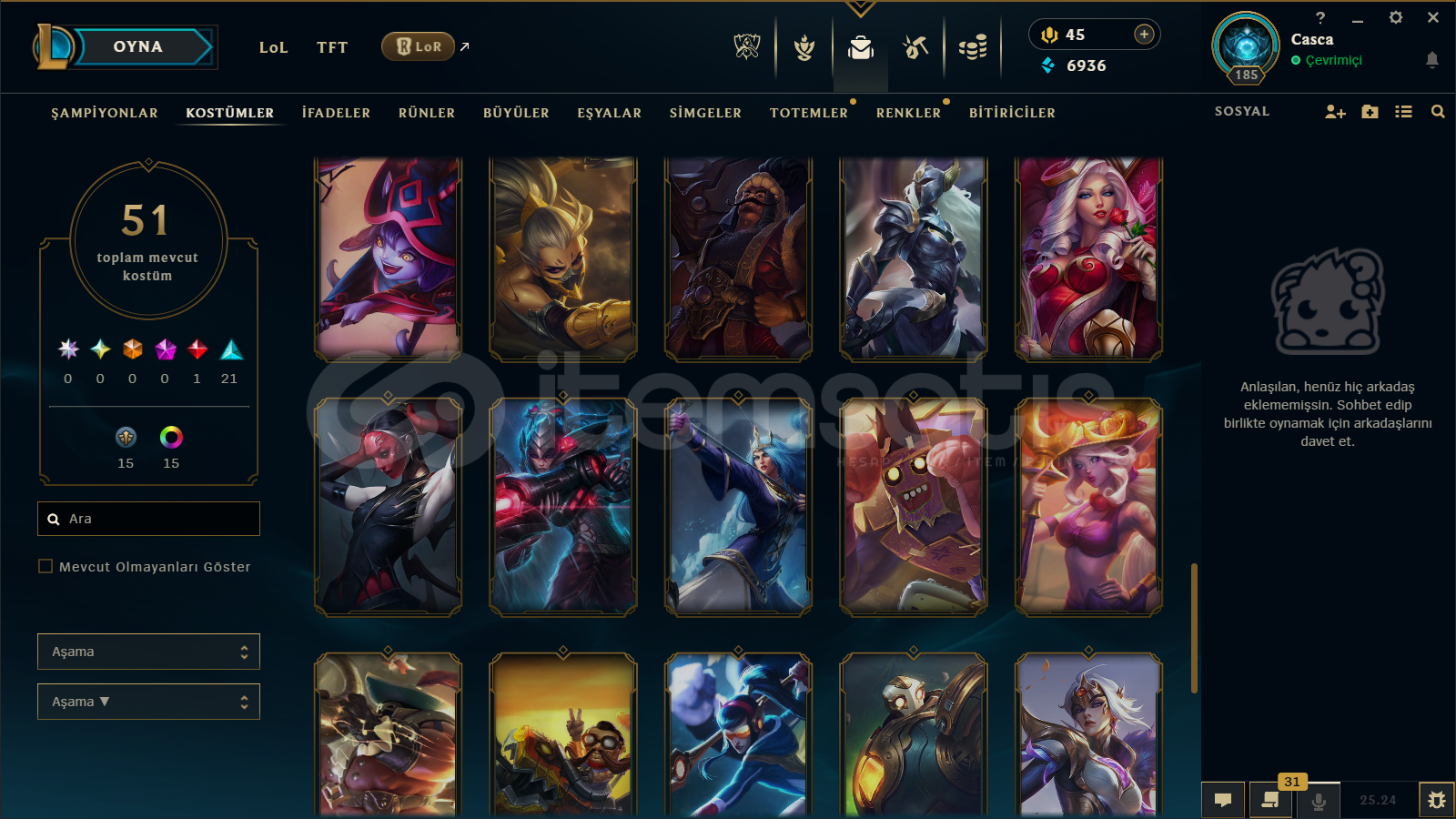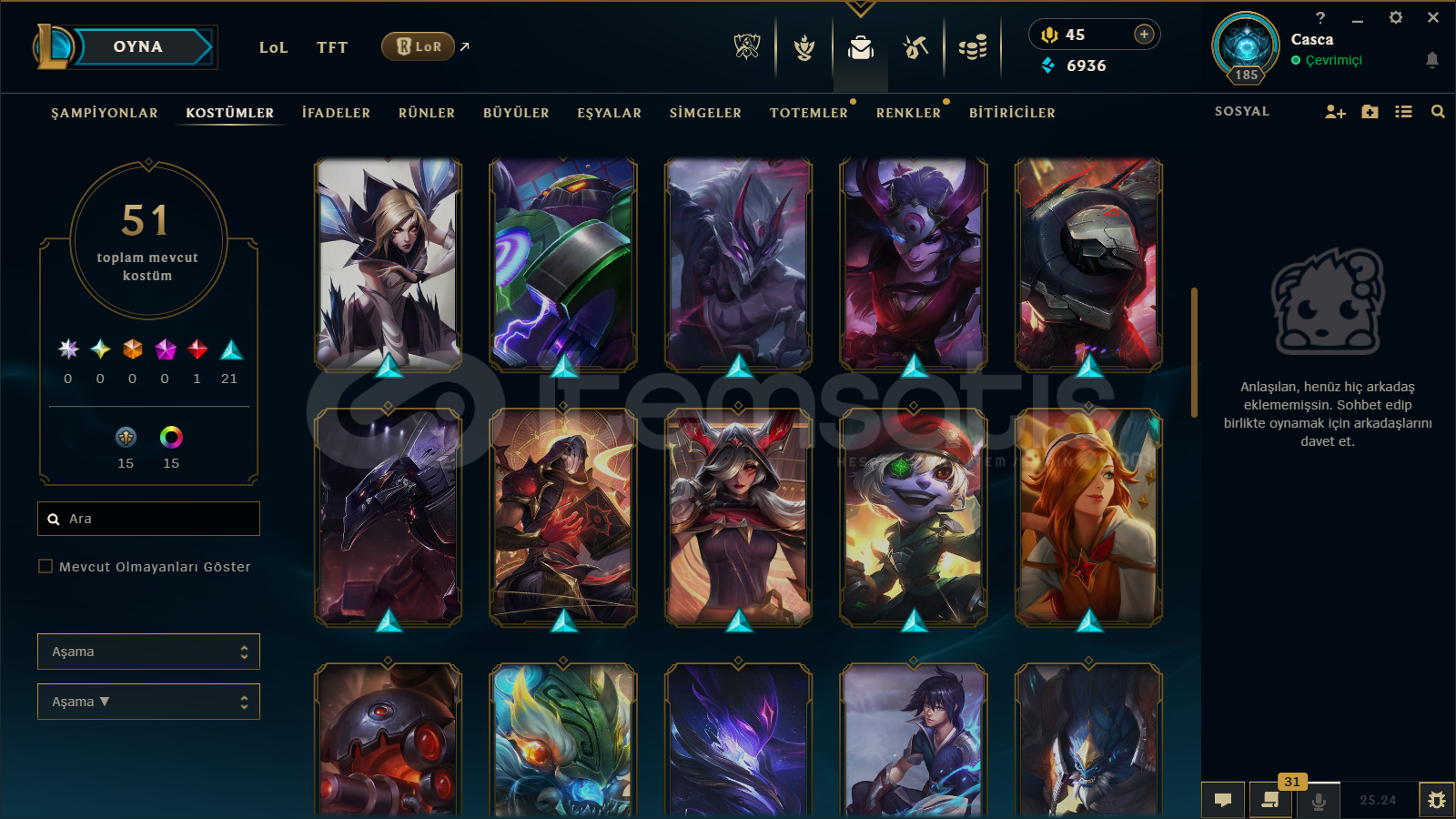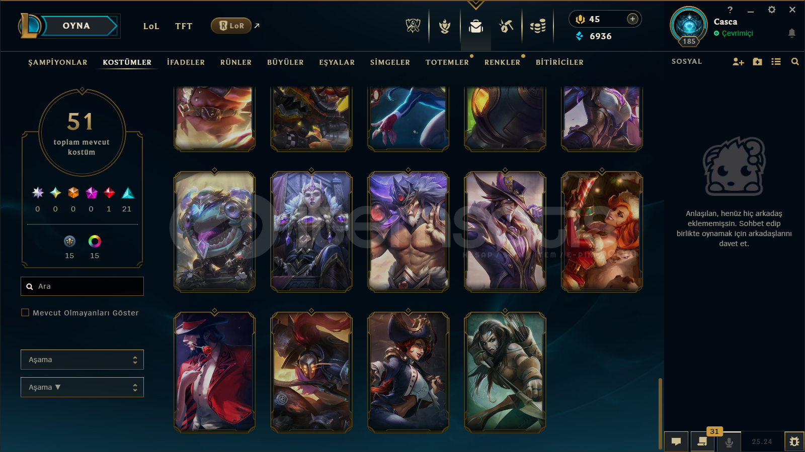 🔷 League of Legends Bilgileri🔹 Sunucu: TR🔹 Level: 185🔹 Sıralama:• Tek/Çift: Platin 2• Esnek 5v5: Gümüş 1🔹 Mavi Öz: 6936🔹 Şampiyon Sayısı : 129🔹 Kostüm Sayısı: 51📊 OP.GG Profili : https://op.gg/tr/lol/summoners/tr/Casca-1881✅ Hesaplarımın Tamamen ArkasındayımPiyas...