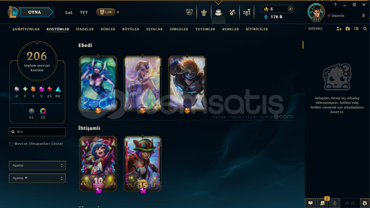 Hesabın E-Posta'sı ve Tüm bilgileri değiştirilebilir.Teslimatlar Manuel Yapılmaktadır, 7/24 satın alabilirsiniz. 6 saat içerisinde geri dönüş yapılır.Dereceli Direkt Girilebilir.176 K Mavi Öz & 52 Turuncu Öz + 20 Anahtar Bulunmaktadır.Hesabınızı satın aldıktan sonra sizden başka kimsenin erişimi olmaz..-----HANDMADE GARANTILI HESAPTIR GERI ALINMA 'ASLA' OLMAZVA...