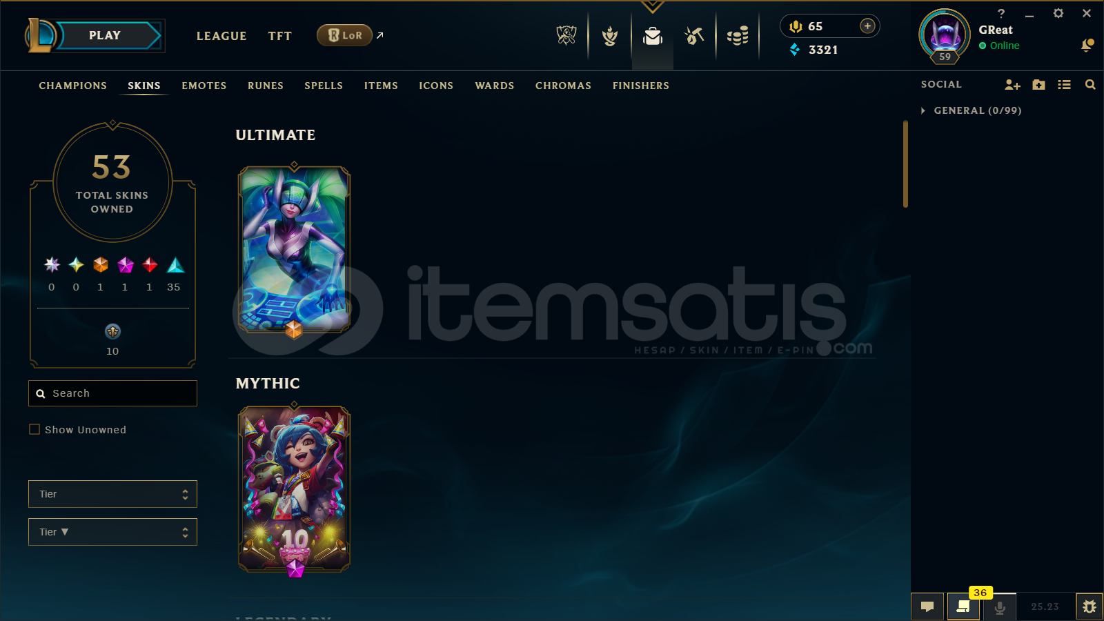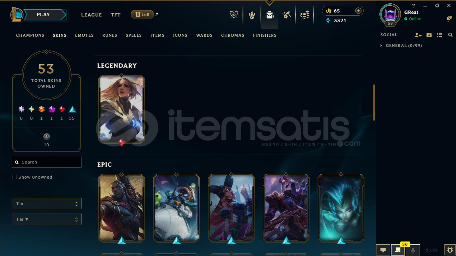 🔷 League of Legends Bilgileri🔹 Sunucu: TR🔹 Level: 59🔹 Sıralama:• Tek/Çift: Unranked• Esnek 5v5: Unranked🔹 Mavi Öz: 3321🔹 Şampiyon Sayısı : 84🔹 Kostüm Sayısı: 53📊 OP.GG Profili : https://op.gg/tr/lol/summoners/TR/GReat-TR1✅ Hesaplarımın Tamamen ArkasındayımPiyasadaki birç...