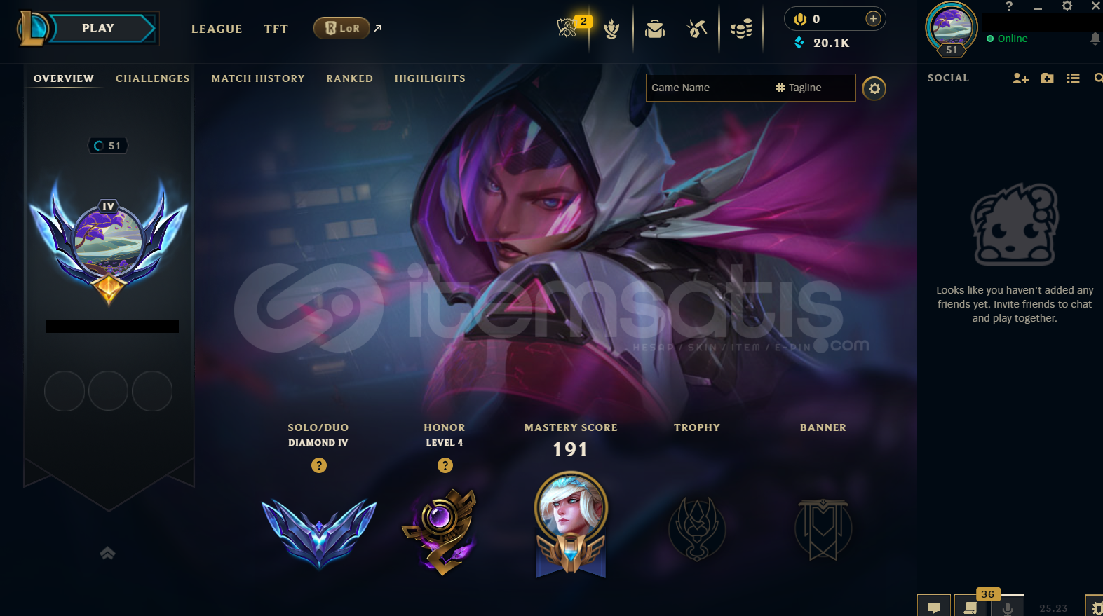 Hesap TR Tek/Çift Elmas 4 - 5 Lp - 64 Winrate - Esnek Zümrüt 3 - 71 Lp - 69 Winrate TR LoL Hesabıdır.