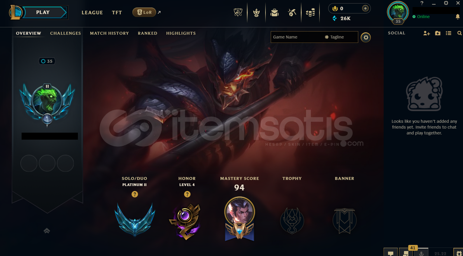 Hesap TR Tek/Çift Plat 2 - 96 Lp - 64 Winrate 25 Win 14 Lose TR LoL Hesabıdır.