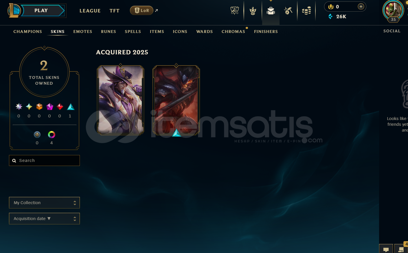 TR 64 WR Plat 2 | 2 Kostüm - 26K Mö | LoL Hesap
