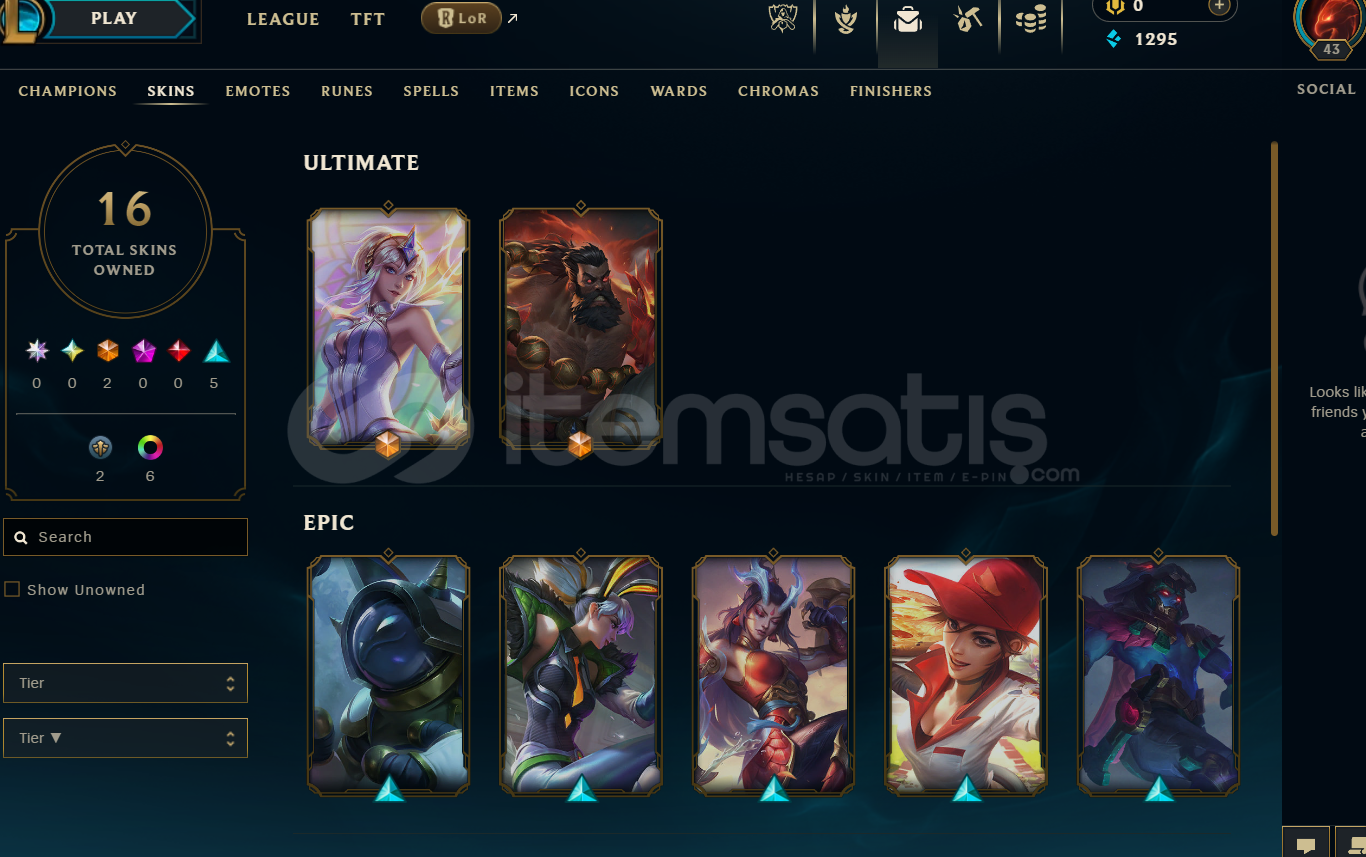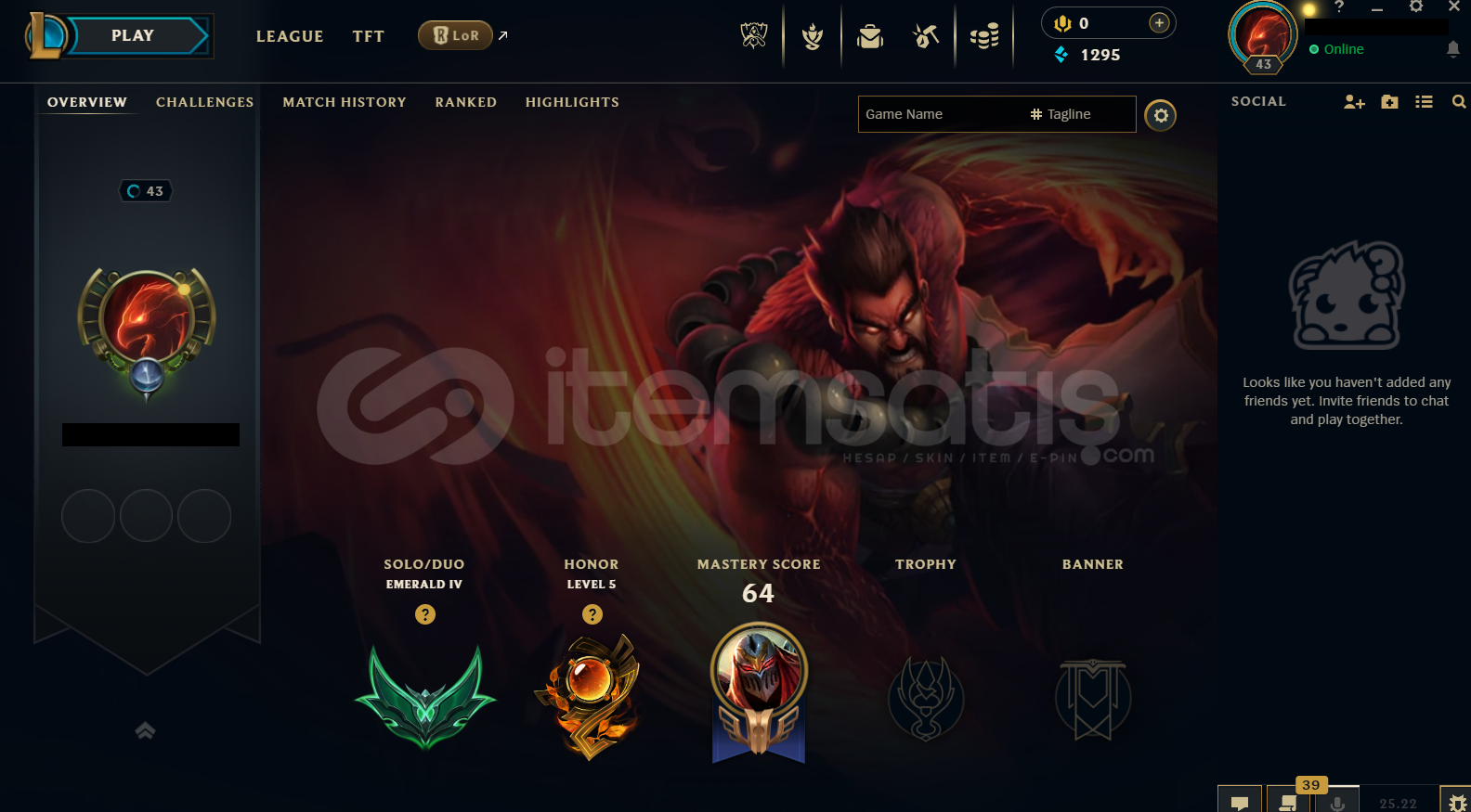 Hesap TR Tek/Çift Zümrüt 4 - 2 Lp - 64 Winrate TR LoL Hesabıdır.