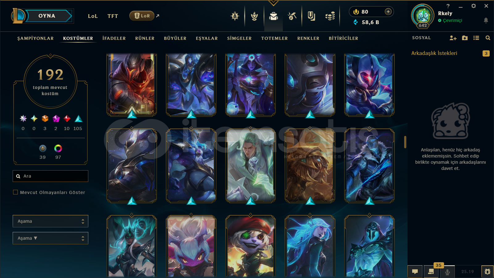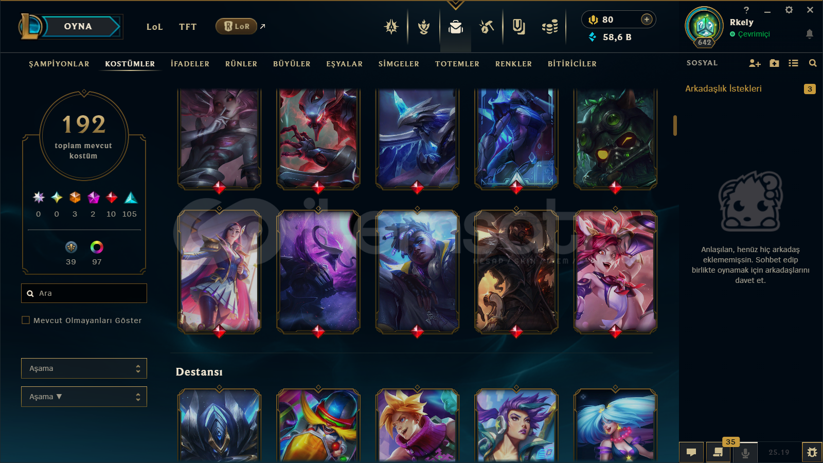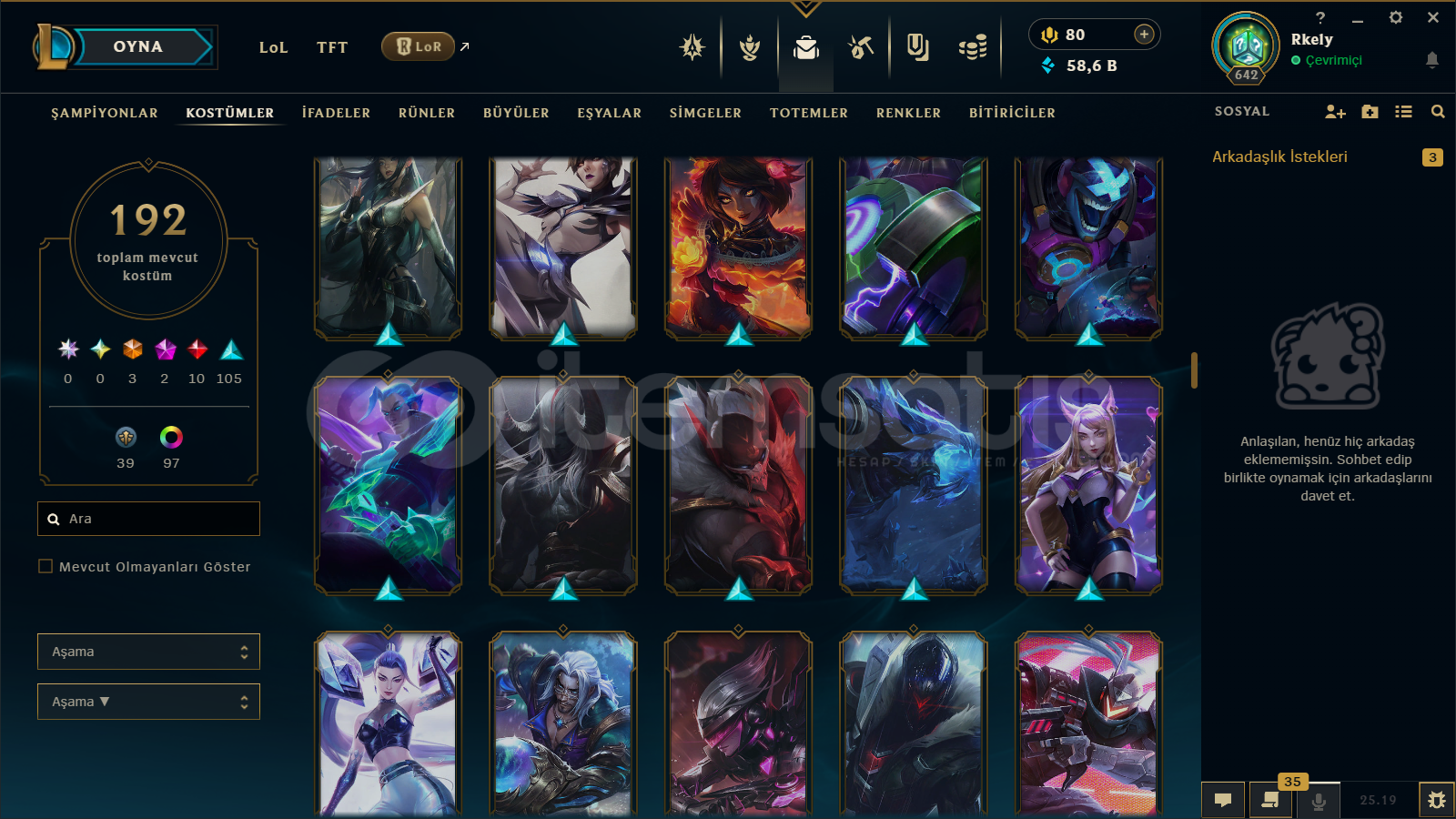 hesap çok güzel çıktı herşey var yağmacı asil champions (abartmıyorum) tavsiye ederim