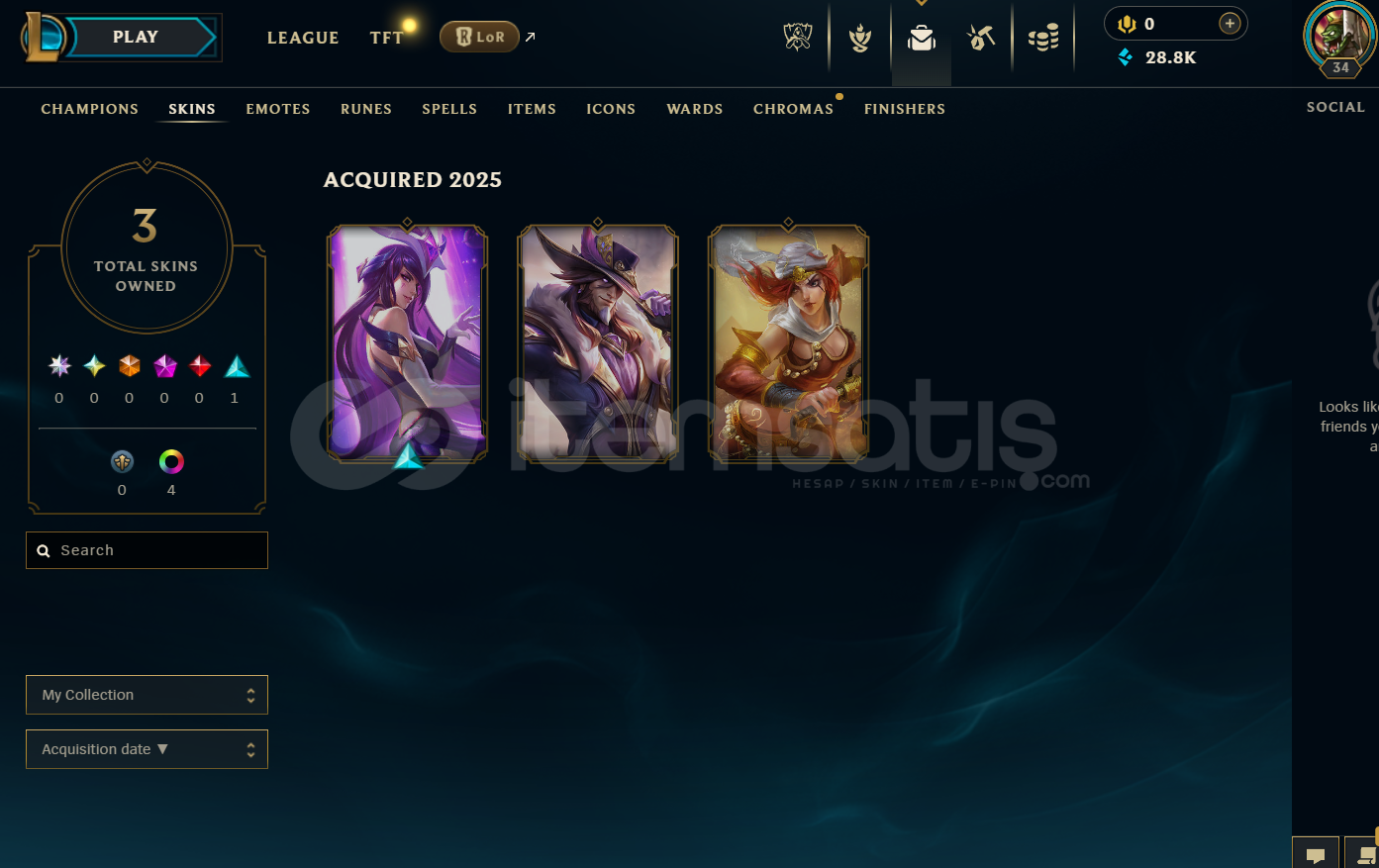 TR 65 WR Plat 3 | 3 Kostüm - 28K Mö | LoL Hesap