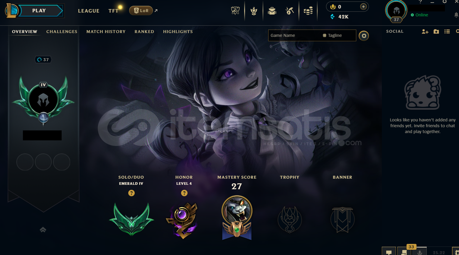 Hesap TR Tek/Çift Zümrüt 4 - 97 Lp - 69 Winrate 40 Win 18 Lose TR LoL Hesabıdır.