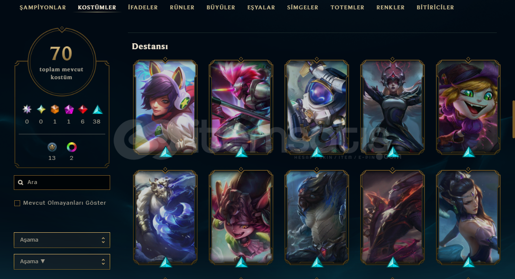 ⭐TR+70SKIN+61 LVL+118CHAR+BRONZ2+ALAN YAŞADI⭐
