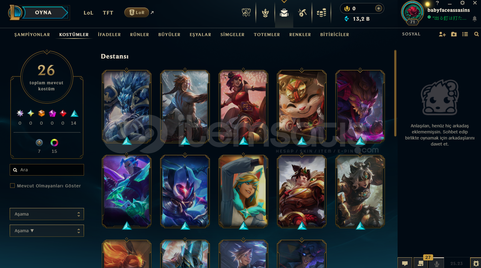 TR + 71 LVL + 26 KOSTÜM+ 100 HERO+İLK SAHİP