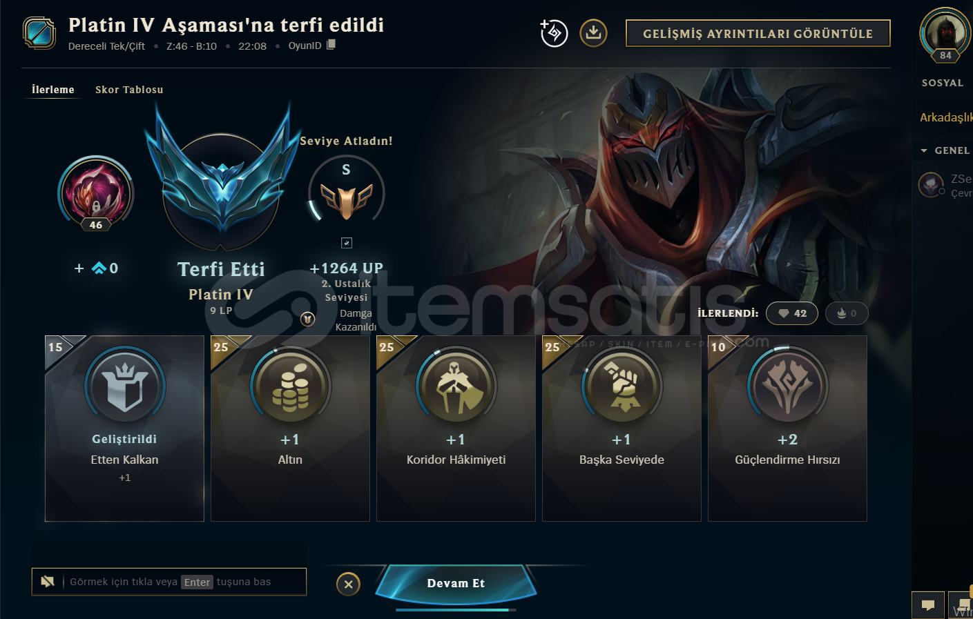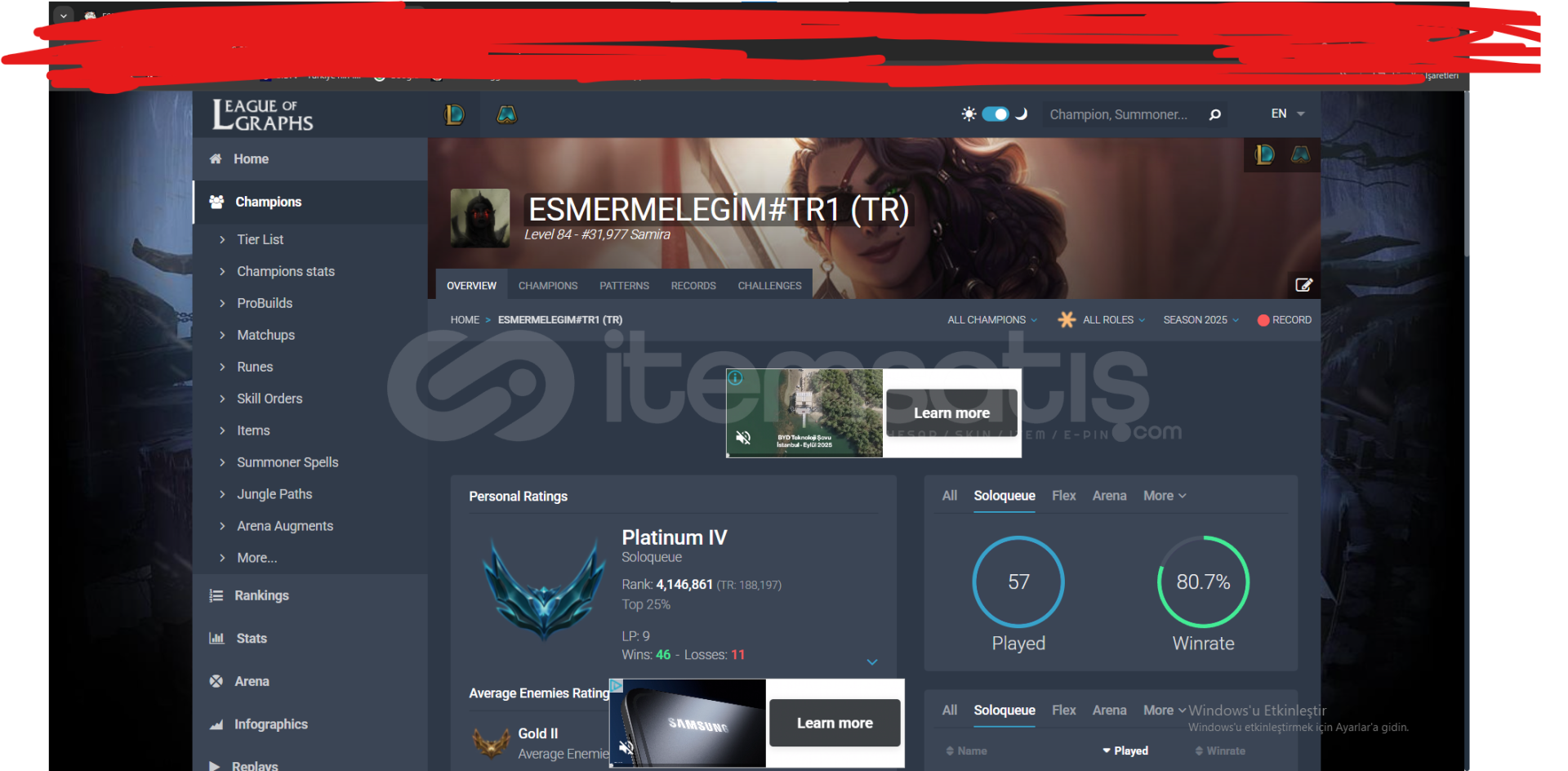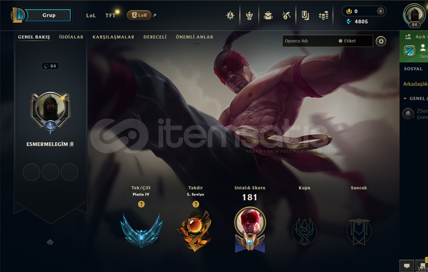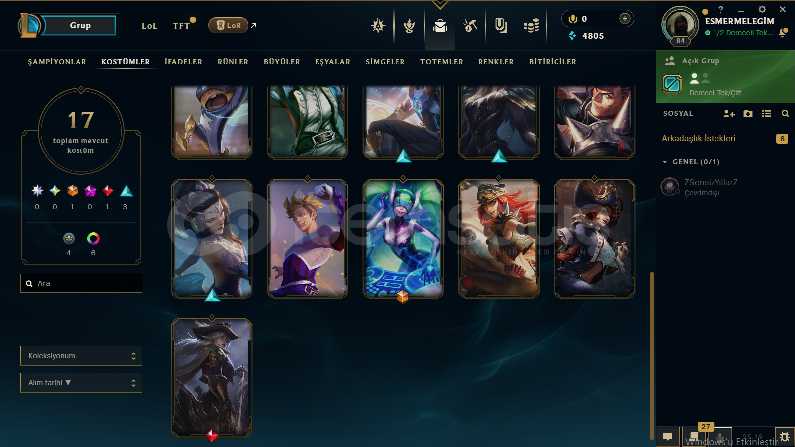 hesapta yüzde 81 kazanma oranlıdır toplam 46 galibiyet 10 mağlubiyet mevcuttur hesapta 17 kostüm vardır EBEDİ Dj Sona Efsanevi Vahşi Batılı Ashe84 leveldir bol herolu