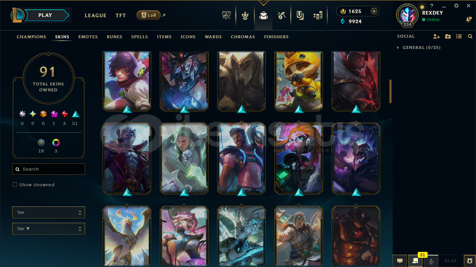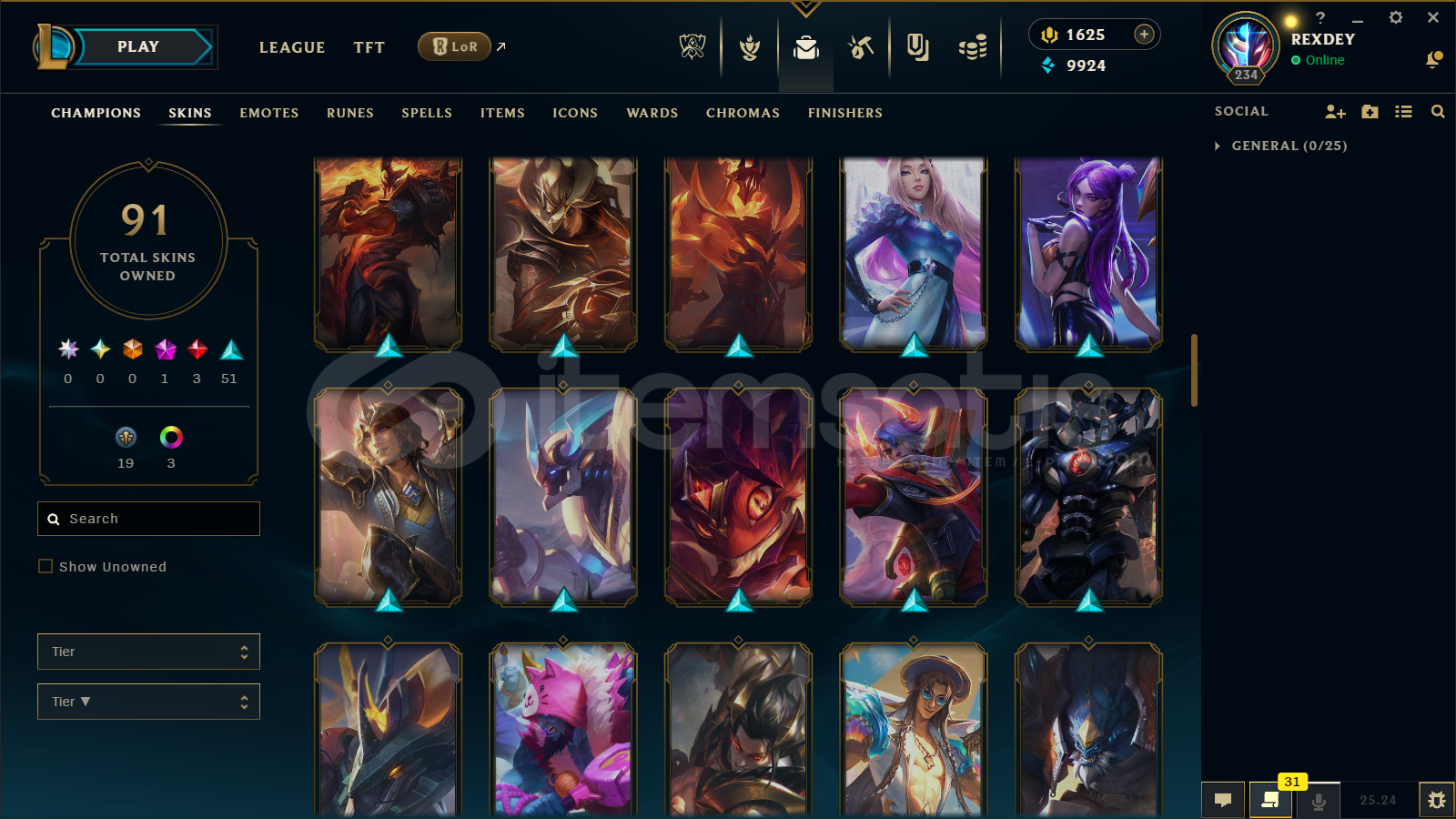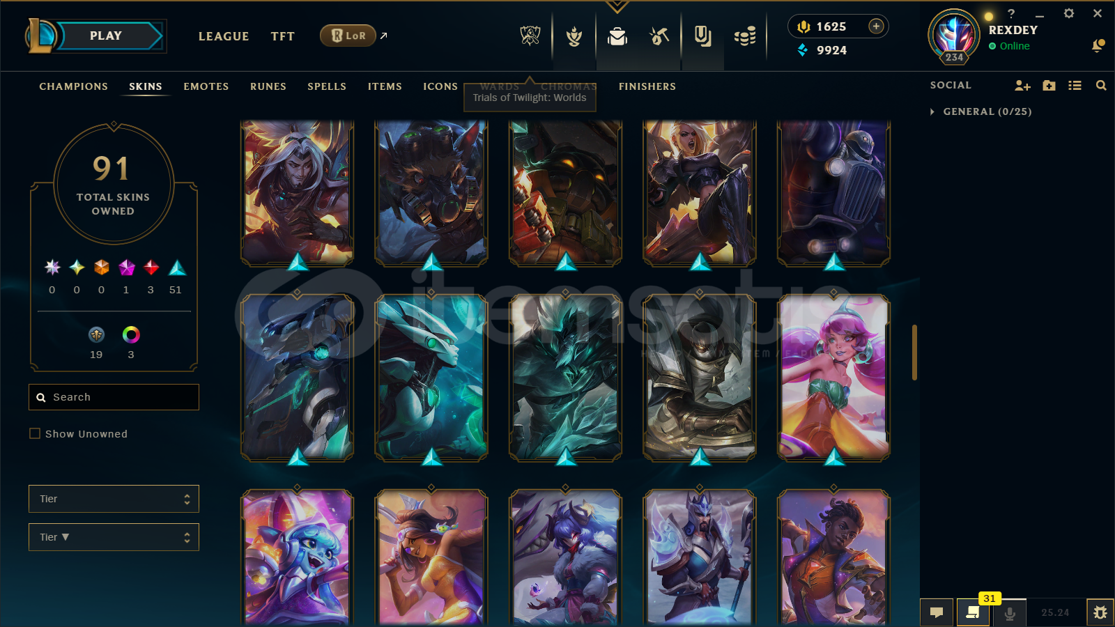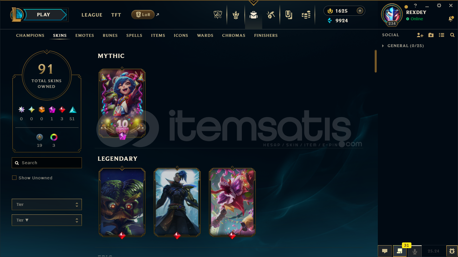 TR | 91 SKİN | 1600 RP | UNRANKED