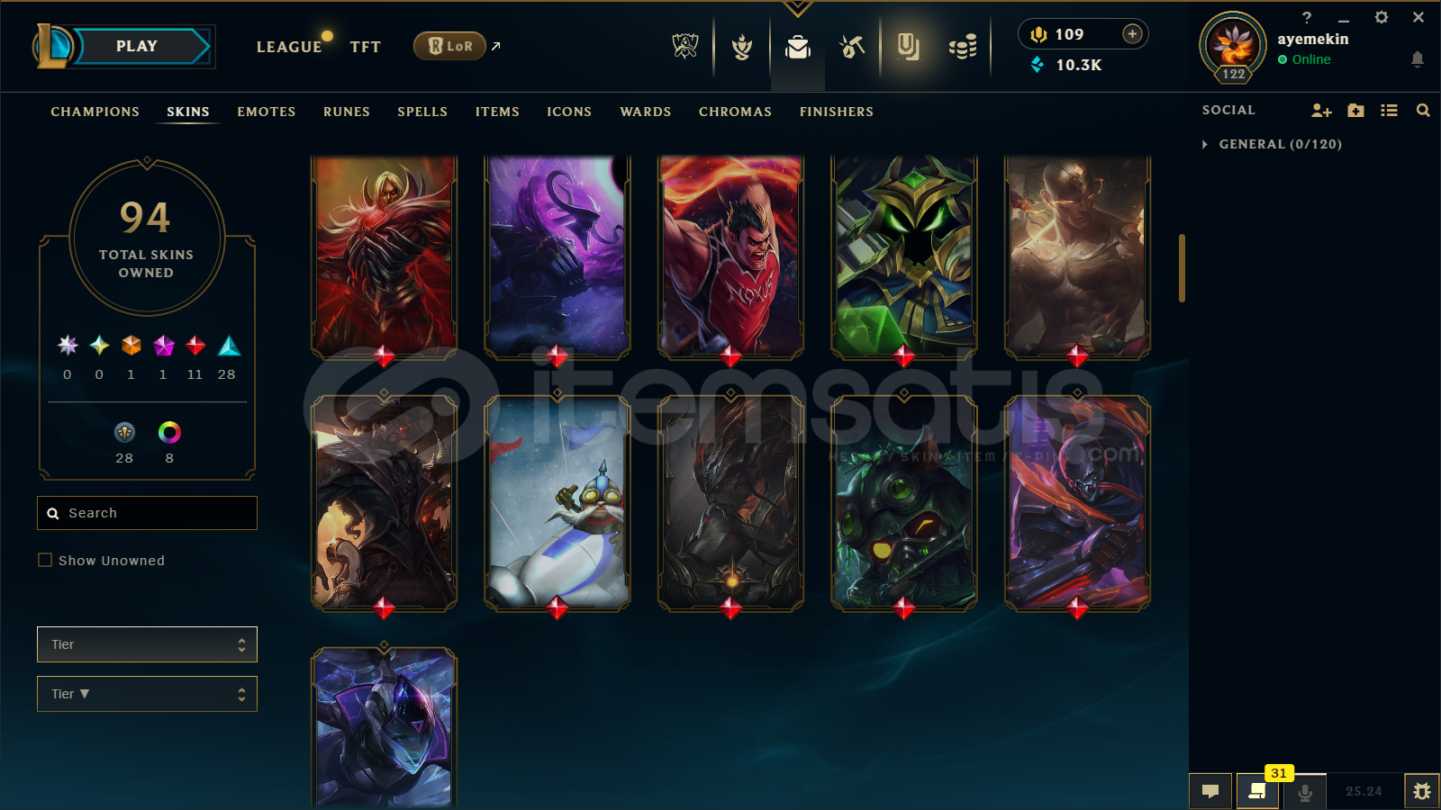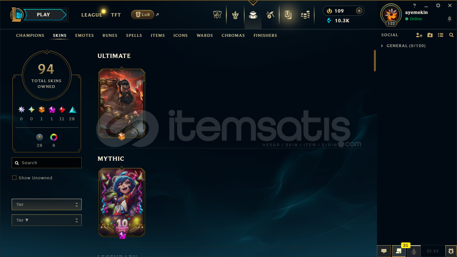 🔷 League of Legends Bilgileri🔹 Sunucu: TR🔹 Level: 122🔹 Sıralama:• Tek/Çift: Unranked• Esnek 5v5: Unranked🔹 Mavi Öz: 10300🔹 Şampiyon Sayısı : 104🔹 Kostüm Sayısı: 94📊 OP.GG Profili : https://op.gg/tr/lol/summoners/TR/ayemekin-1111✅ Hesaplarımın Tamamen ArkasındayımPiyasadaki birçok ...