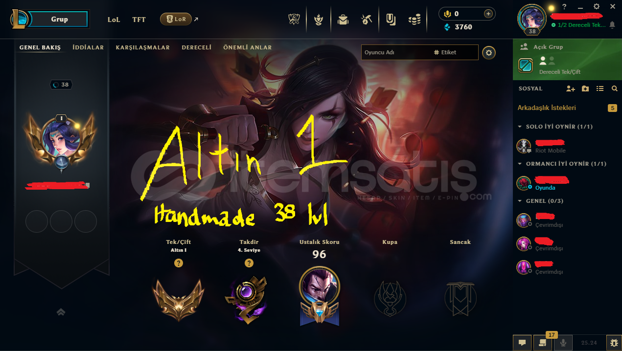 Sunucu TR38 level Altın 1 Handmade Hesap Kostümler:Savaş ustası katarinaKod adı katarinamail adresi değişecektir.