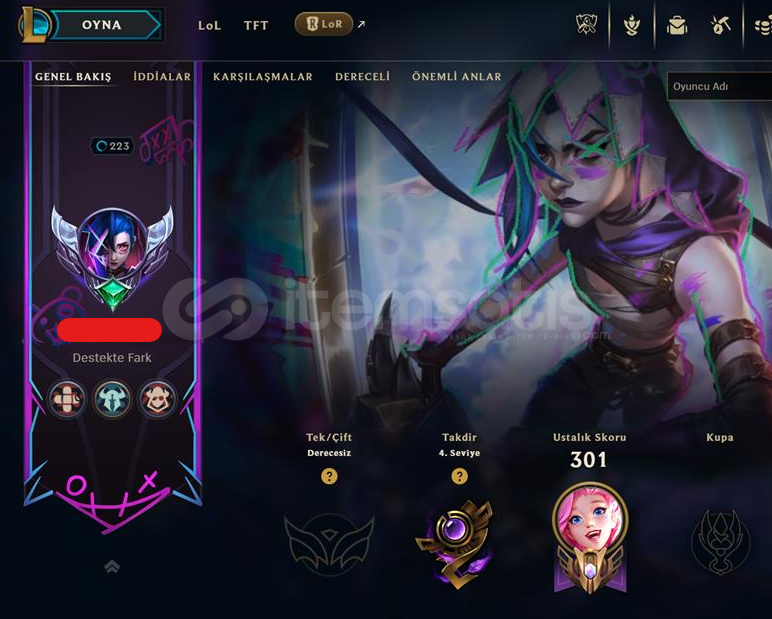 Bu hesap, itemsatis.com platform kurallarına tam uyumla satılmaktadır ve platformun mesajlaşma sistemi üzerinden hızlı ve güvenli bir şekilde teslim edilecektir. Hesap, teslim anında herhangi bir yasak, kısıtlama veya çekilme durumu olmaksızın temiz bir durumdadır. Lütfen dikkat: Hesap, teslim edildiği haliyle satılmaktadır. Teslimat sonrası alıcının kullanımı (örneğin, üçüncü taraf yazılımlar, çoklu IP girişleri veya Riot Games’in prosedürleri) kaynaklı sorunlardan veya hesap çekilme durumlarından satıcı sorumlu değildir. Alıcı, satın alma işleminden önce hesabın durumunu incelemeli ve platform kurallarını kabul etmiş sayılır. Platform kuralları çerçevesinde yalnızca hesap teslimatına ilişkin sorunlar için destek sağlanır. Diğer ilanlarımıza göz atmayı unutmayın!