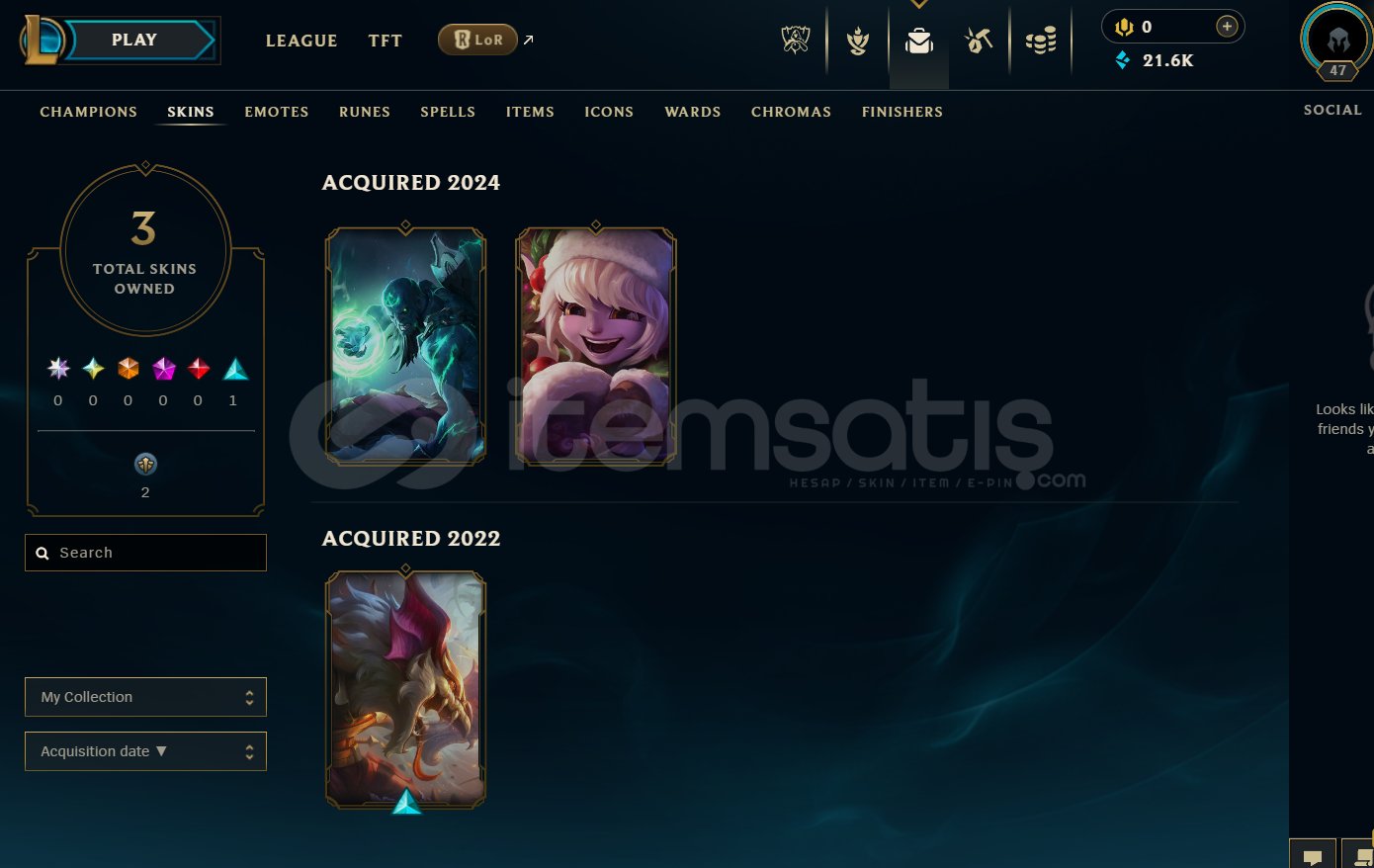 TR Bronz 4 | 3 Kostüm - 21K Mö | LoL Hesap