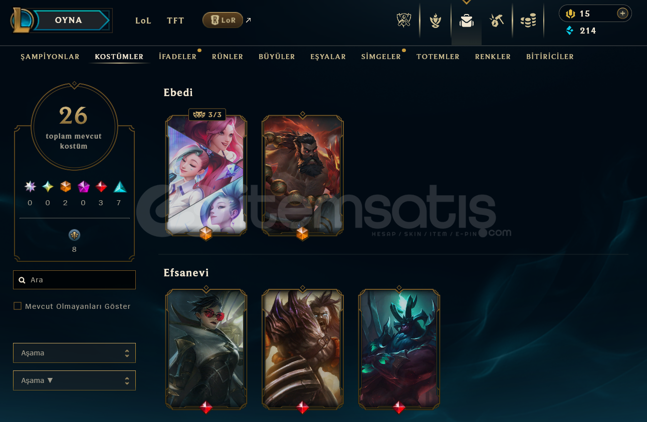HESAP DETAYLARISKİN SAYISI : 26HERO SAYISI : 48LEVEL : 71RANK : DEMİR 2SERVER : TRHESABIN TÜM BİLGİLERİNİ DEĞİŞTİREBİLİRSİNİZ.HESABIN HERHANGİ BİR BANI MEVCUT DEĞİLDİR.SATIN ALINDIKDA SONRA EN KISA SÜREDE TESLİM EDİLİR.HER BÜTÇEYE UYGUN İSTEĞE ÖZEL HESAPLAR MEVCUTTUR.SATIN ALMADAN ÖNCE LÜTFEN MESAJ ATINIZ.TÜM SORULARINIZ İÇ&...