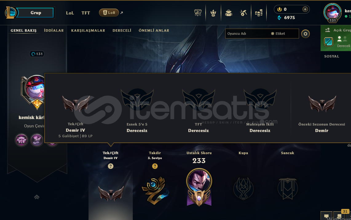 TR DEMİR 4 STUCK HESAP S10 HESABI 78 ŞAMPİYON 6K+ MAVİ ÖZ 9 KOSTÜM