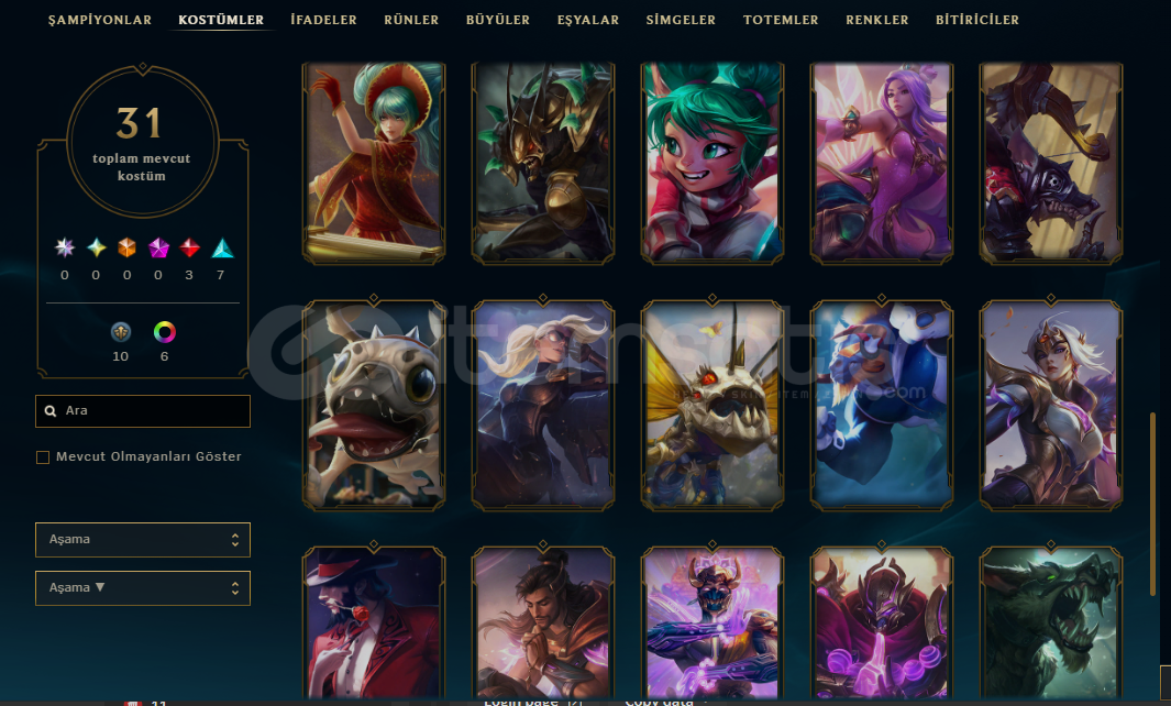 31 Kostüm + 6 Renk Paketi ve 101 Şampiyon bulunmaktadır.