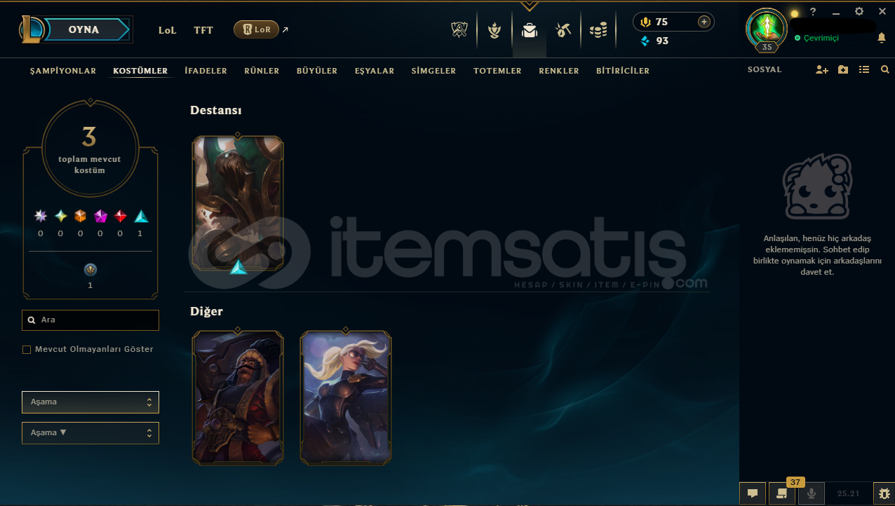 ⭐TR - DERECELİ HAZIR - 2016 HESAP - 3Kostüm⭐