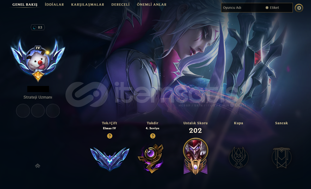 TR⭐Diamond 4⭐17 LP⭐79 Şampiyon⭐23 Skin⭐32KMaviÖ.