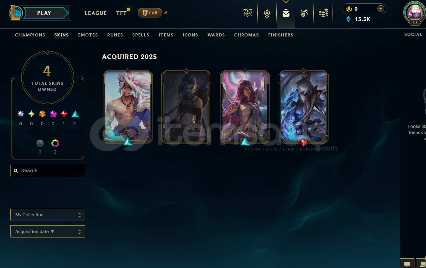 TR Elmas 4 | 4 Kostüm - 65 Hero | LoL Hesap