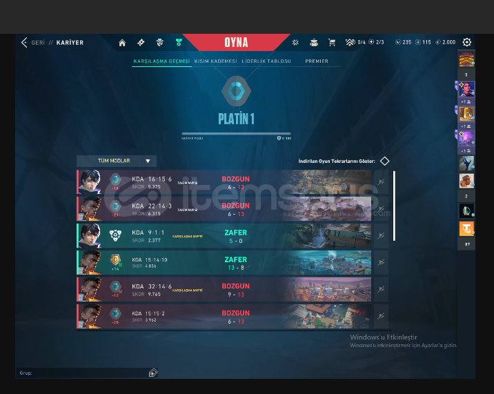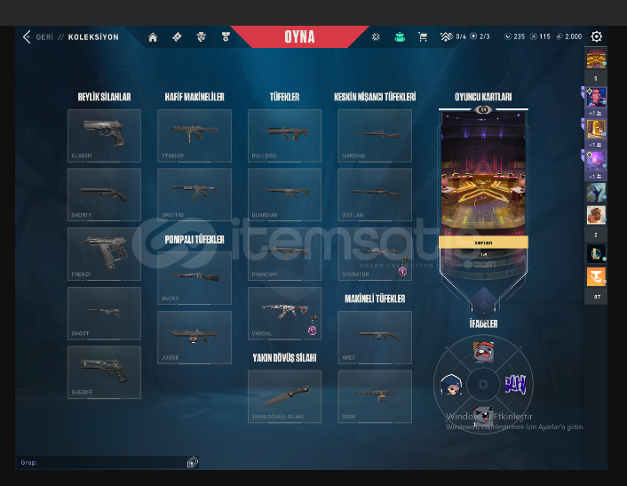 MERHABA SİTEDEKİ EN UCUZ ELMAS HESAPLARDAN BİRİSİ İÇİNDE 56 SKİN 28 TANESİ 1350 RP 2 TANESİ 1820 RP 2 TANESİ İHTİŞAMLI 11 TANESİ HATIRA GERİSİ KARIŞIK. VALORANT HESABI DA PLATİN RGX OPERATOR VE SİHİRPUNK VANDAL VAR.