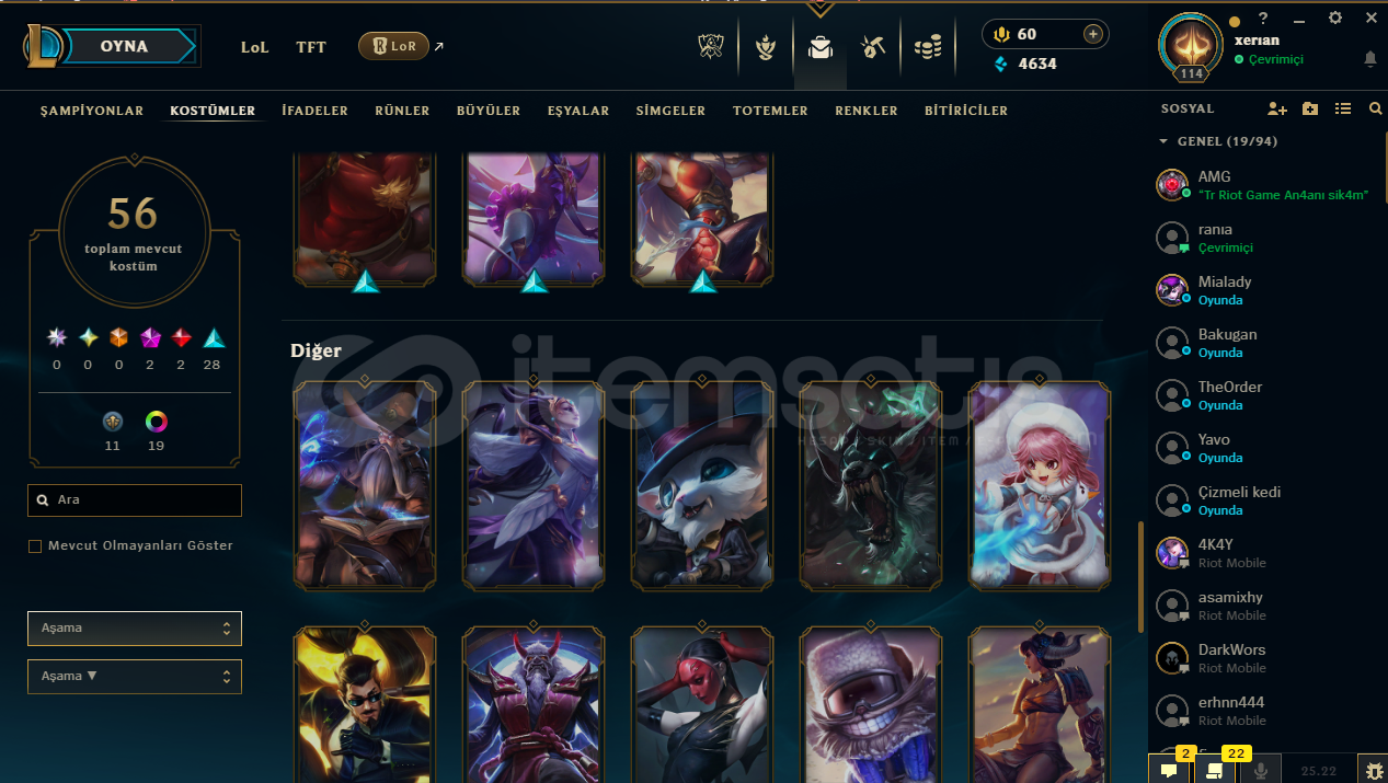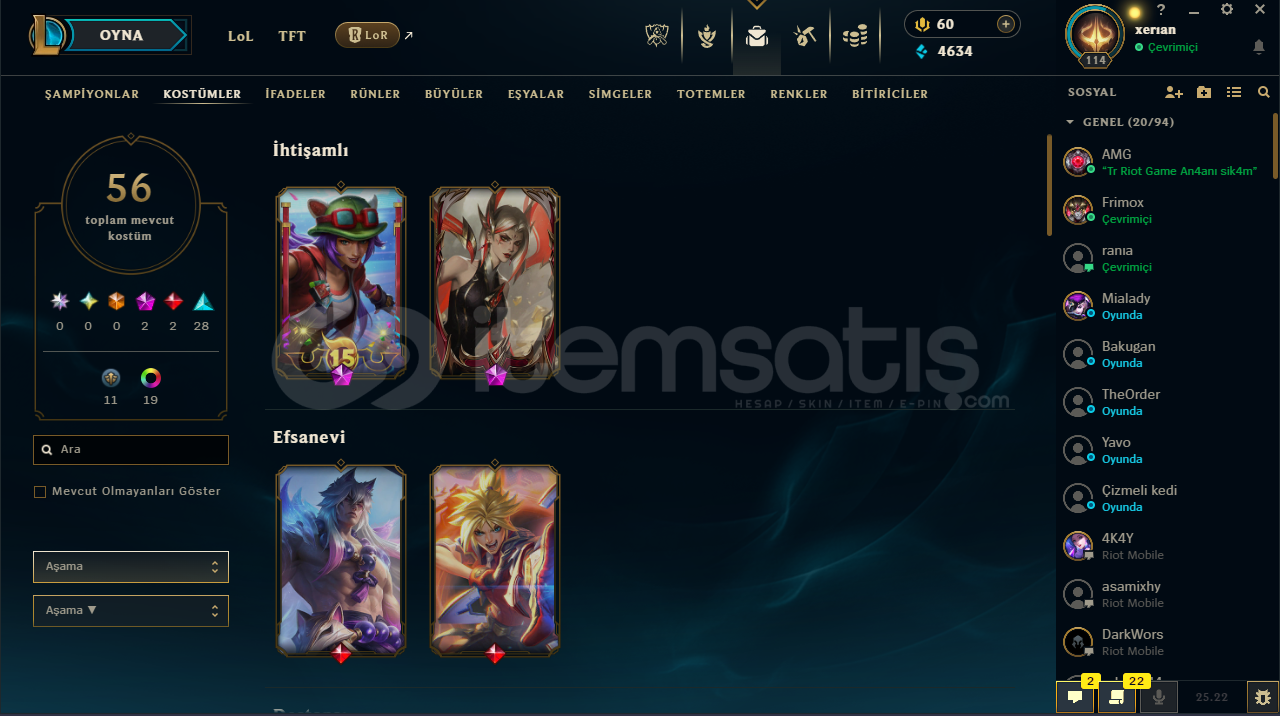 TR ELMAS 56 SKİNLİ VE VALO PLAT 2 SKİNLİ HESAP