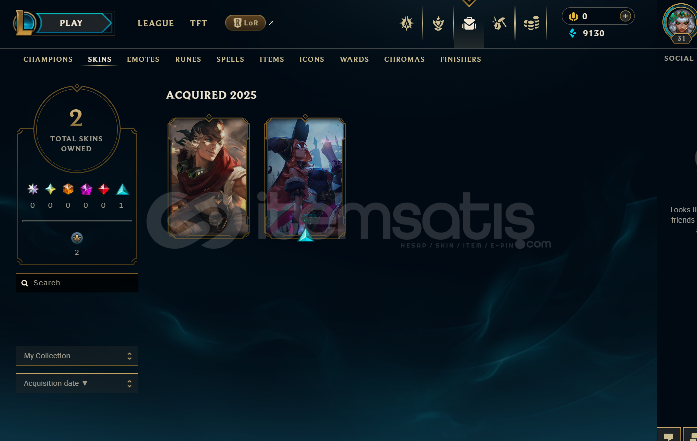 TR Esnek Plat 2 | 2 Kostüm - 20 Hero |LoL Hesap