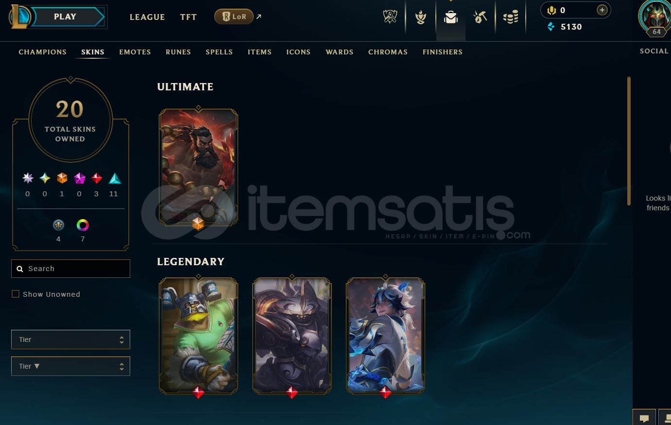 HESAP DETAYLARI:Hesap hiç ban yememiştir ve takdir seviyesi 3 dür.Hesap TR Tek/Çift Unranked - Esnek Silver 2 - 71 Lp TR LoL Hesabıdır.İçerisinde 5130 Mavi Öz 20 Kostüm 56 Hero ve 3 Adet İade Hakkı Mevcuttur.HESAP HAKKINDA:Kendi mail adresinize kayıt edebilir, etkinleştirmeyi kaldırabilir ve şifresini değiştirebilirsiniz.Hesaplarımızda hiç bir sıkıntı çıkmam...