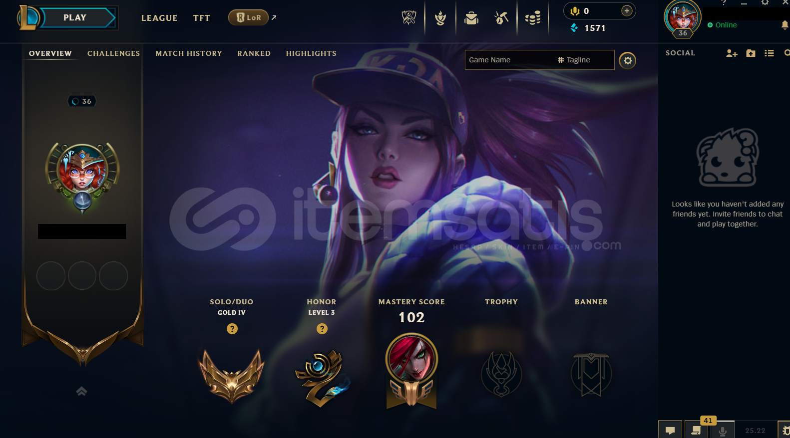 Hesap TR Tek/Çift Gold 4 - 76 Lp - Esnek Plat 1 - 40 Lp TR LoL Hesabıdır.