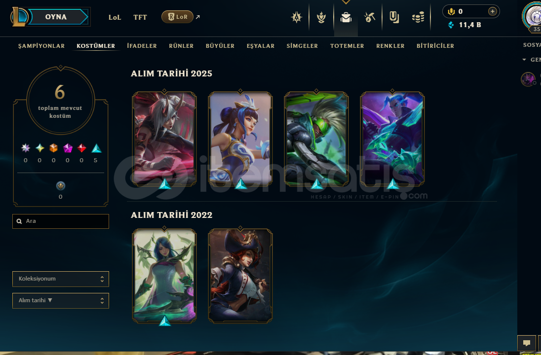 ⭐TR- EKKO 40K - MAİN⭐2022 HESAPHESAP TR GOLD 4 - 12LP36 LVL VE 40 SAMPİYON BULUNMAKTADIR40K EKKO.İRELİA VE DİANA MAİN 9 KOSTÜM BULUNMAKTADIR