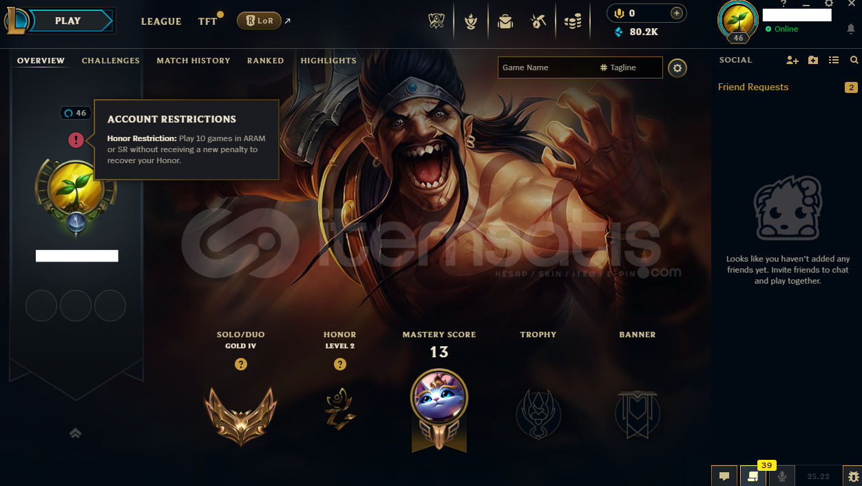 + ŞUANKİ GÜNCEL DURUMU: 7W/5L GEÇMİŞ SEZONLARDA HİÇ RANKED OYNANMADI P2+ MMR MATCHLIYOR,+ GERİ ÇEKİLME VB. OLAYLARLA KARŞILAŞMAZSINIZ,+ HESABIN HERHANGİ BİR BAN GEÇMİŞİ YOK,+ HESAPLAR SATIN ALINDIKTAN SONRA KULLANILAN SCRIPT, LOLSKIN VEYA HERHANGİ BİR 3. PARTİ YAZILIMDAN DOLAYI SORUMLULUK VE İADE SÜRECİ ÜSTLENMİYORUZ,+ 7/24 AKTİFİM HIZLI DÖ...