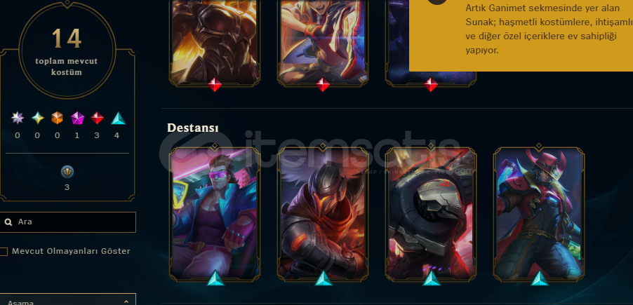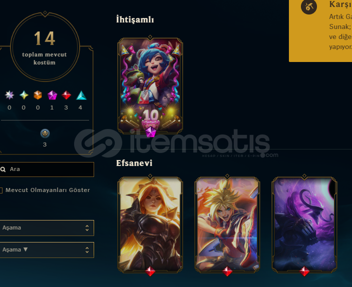 HESAP 14 ADET SKİN MEVCUT