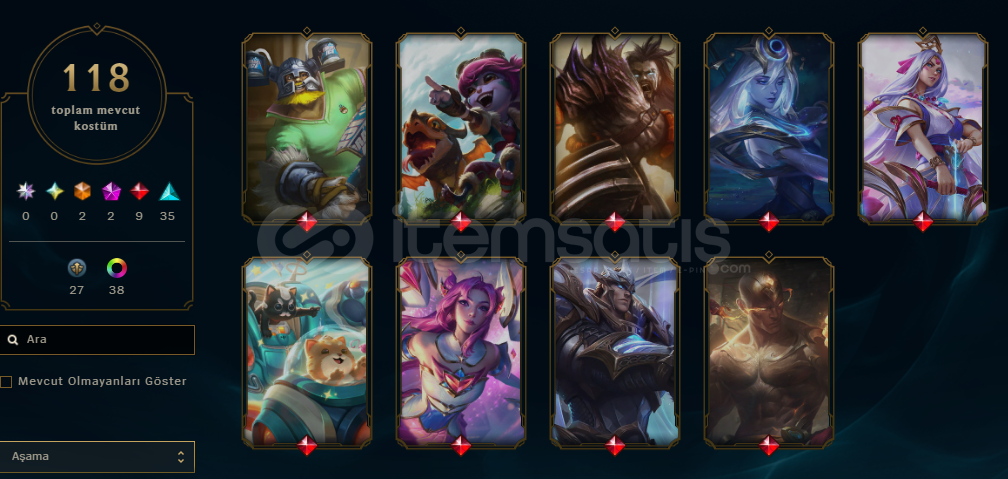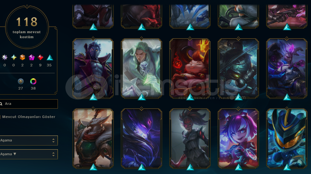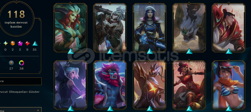 HESAPTA TOPLAM 118 SKİN MEVCUT