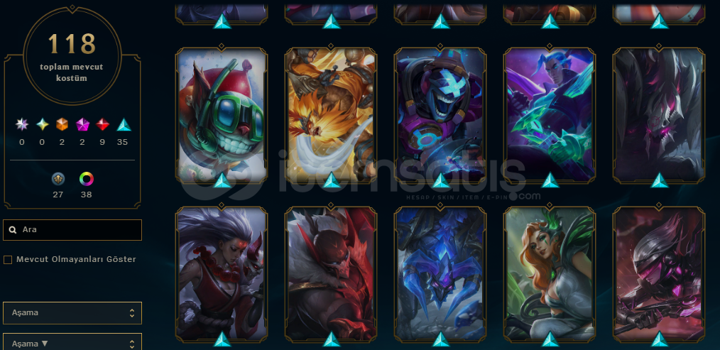 HESAP TURKEY SUNUCU HESAP SEVİYESİ 404 LEVELHESAP ELMAS 3HESAP 5 SEVİYE TAKTİRHESAP SATIN ALDIKTAN SONRAA MAİL-ŞİFRE-TELEFON DEĞİŞTİREBİLİRSİNİZHESAPTA TOPLAM 118 SKİN MEVCUTHESAPTA TOPLAM 164 HERO MEVCUT