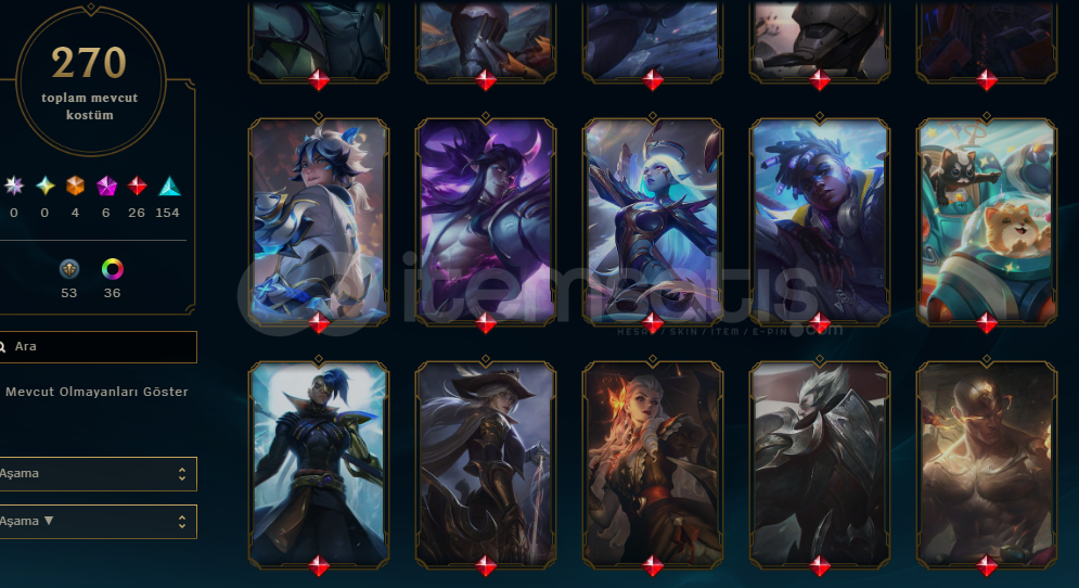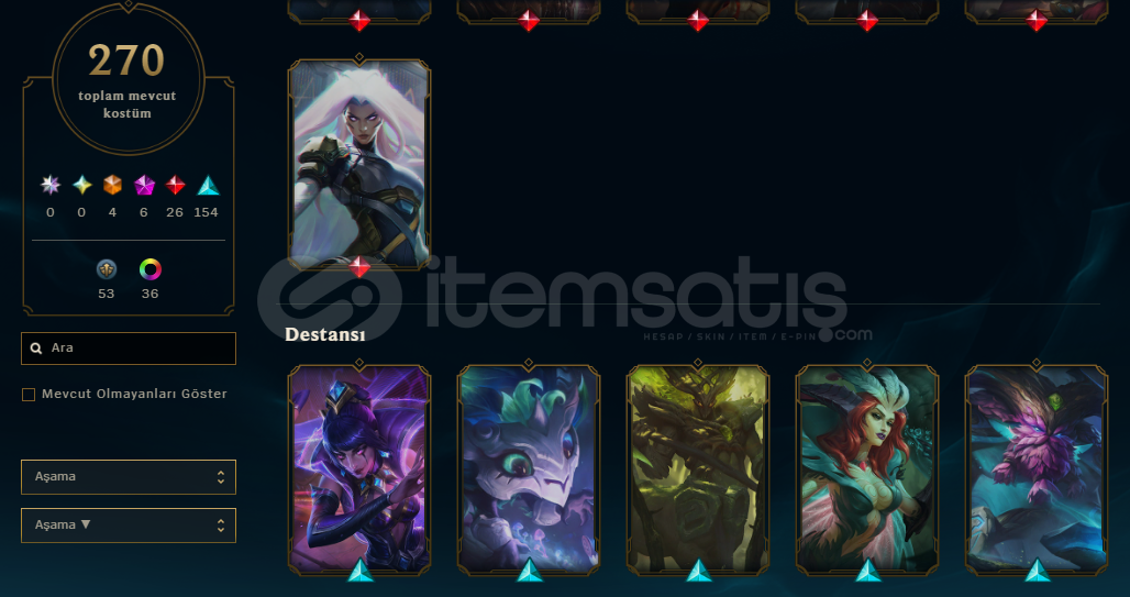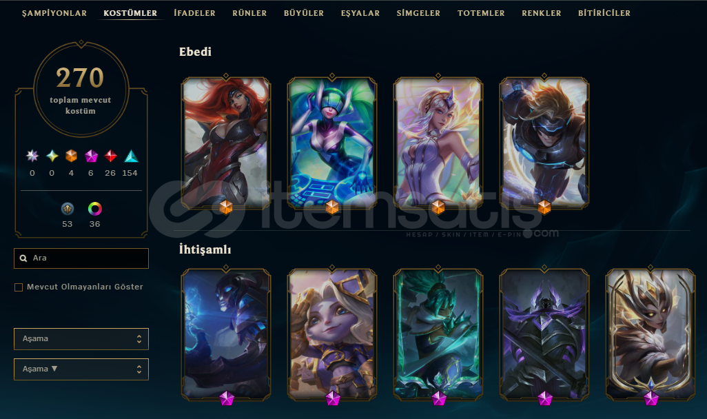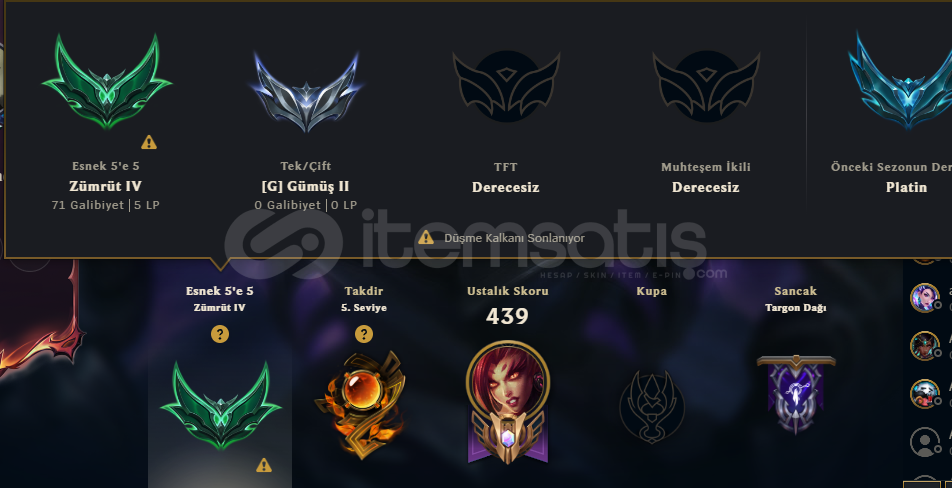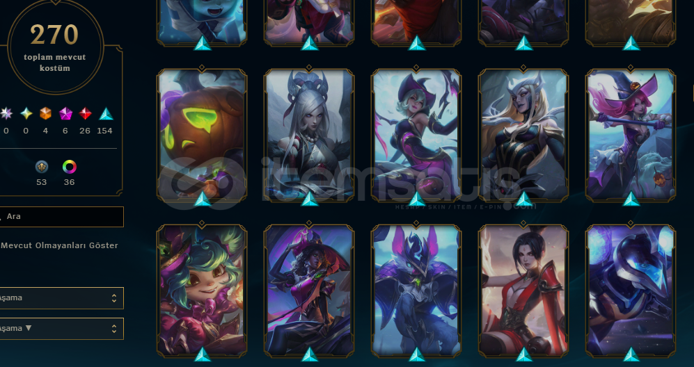 5 SEVİYE TAKTİRHESAP TURKEY SUNUCUHESAP SEVİYESİ 274 LEVELMERAK EDİLEN KÖSTÜM VARSA ARAMA YAPABİLİRİMHESAP SATIN ALDIKTAN SONRA MAİL-ŞİFRE DEĞİŞTİREBİLİRSİNİZ TELEFON DEĞİŞMİYOR TELEFON SORUN TEŞKİL ETMEZHESAPTA 270 ADET SKİN MEVCUTHESAPTA 182 HERO MEVCUT