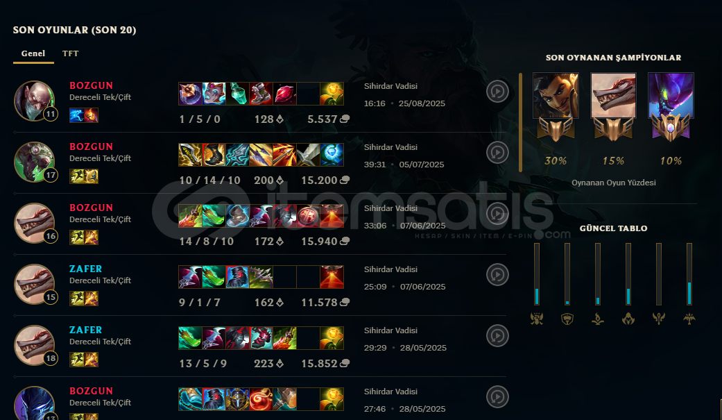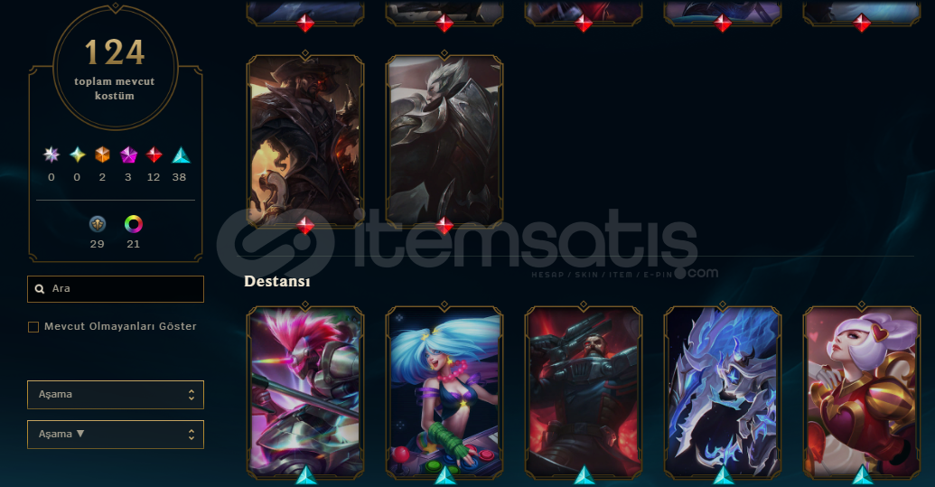 HESAP TURKEY SUNUCU HESAP PLAT 4 HESAP SEVİYESİ 279 LEVELHESAP SATIN ALDIKTAN SONRA MAİL-ŞİFRE-TELEFON EKLEYEBİLİR DEĞİŞTİREBİLİRSİNİZHESAP PASİF BİR HESAP'TIRHESAPTA BİR SORUN YOKTURHESAPTA TOPLAM 150 ADET CHAMPİONS MEVCUT